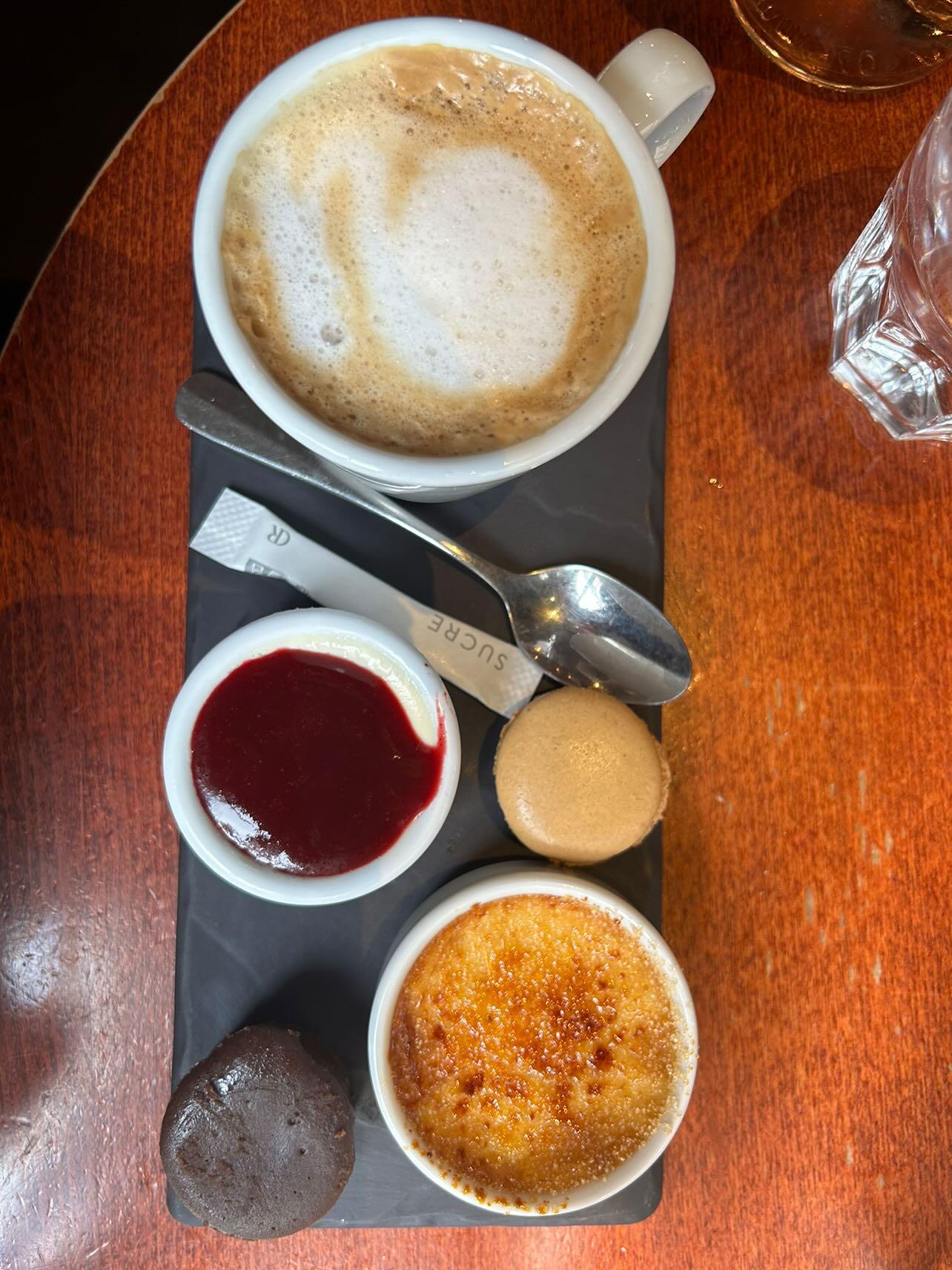 Je suis venu manger une dernière crème brûlée avant de quitter Paris et cela a satisfait notre envie. Nous n'avons pas eu de nourriture mais ça sentait bon. L'endroit était confortable mais un peu à l'étroit.