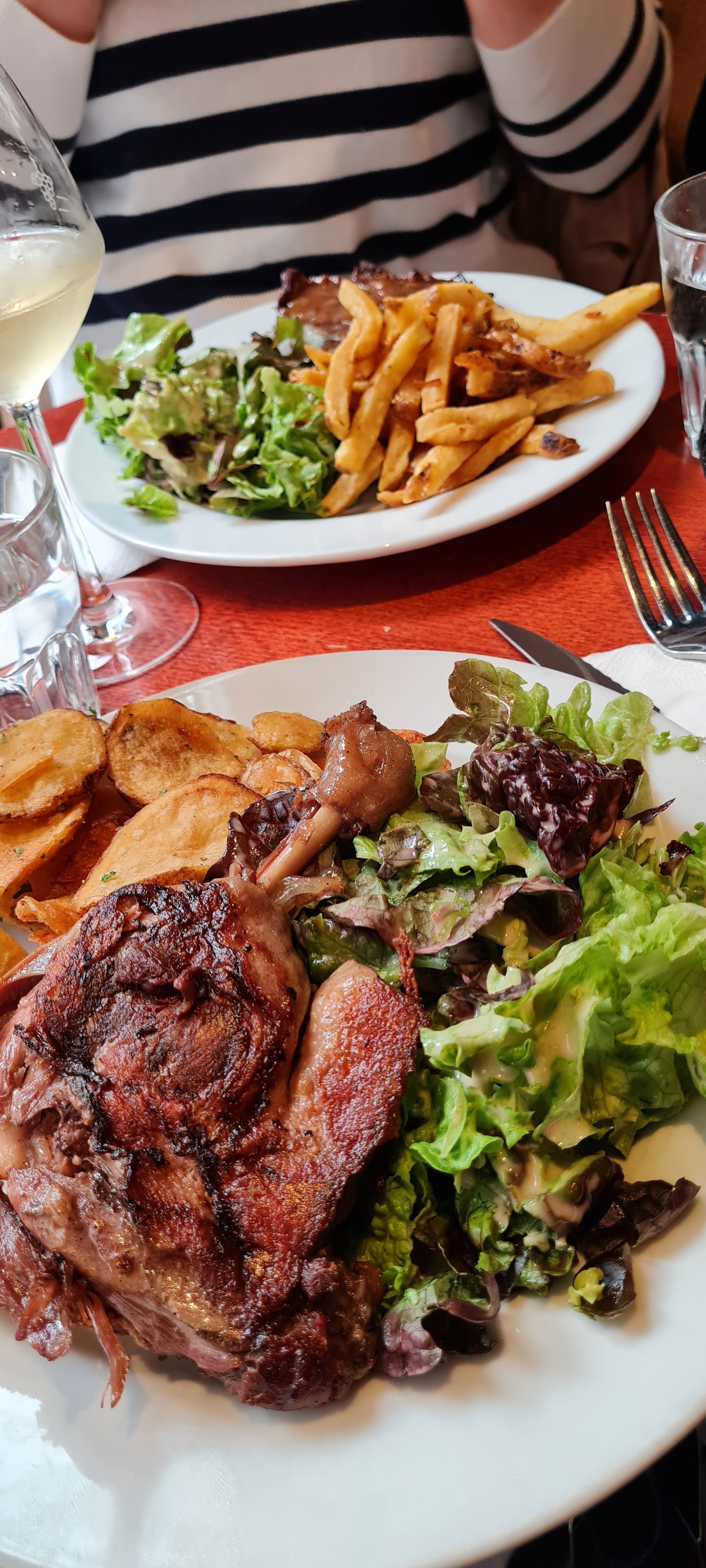 Très impressionné. Il y avait le canard confit et le steak. Les deux étaient super. Le prix était tout à fait raisonnable. Le personnel était sympathique et le vive était très agréable….. et le dessert était incroyable