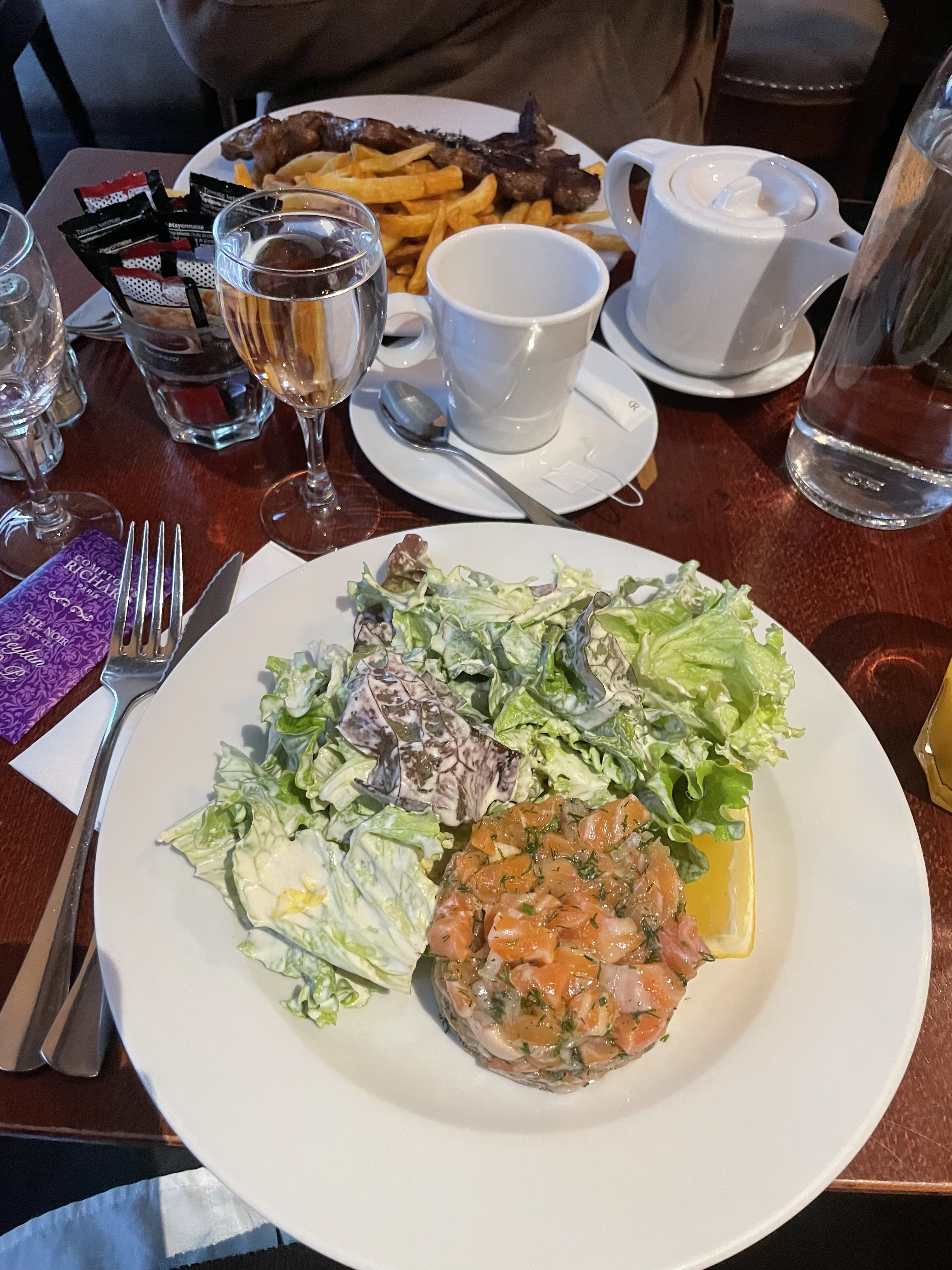 Nous avions faim après avoir été au Musée d’Orsay le matin et en début d’après-midi. Un autre endroit avec des portions généreuses et une nourriture très savoureuse. Les services étaient sympathiques et calmes et nous avons été très satisfaits de la qualité de tout ce que nous avons mangé et bu. nous avons tous les deux pris des salades (canard et fruits de mer) et elles étaient généreuses et savoureuses. le canard est plutôt une assiette de viande avec une généreuse portion de laitue, mais je ne me plains pas.