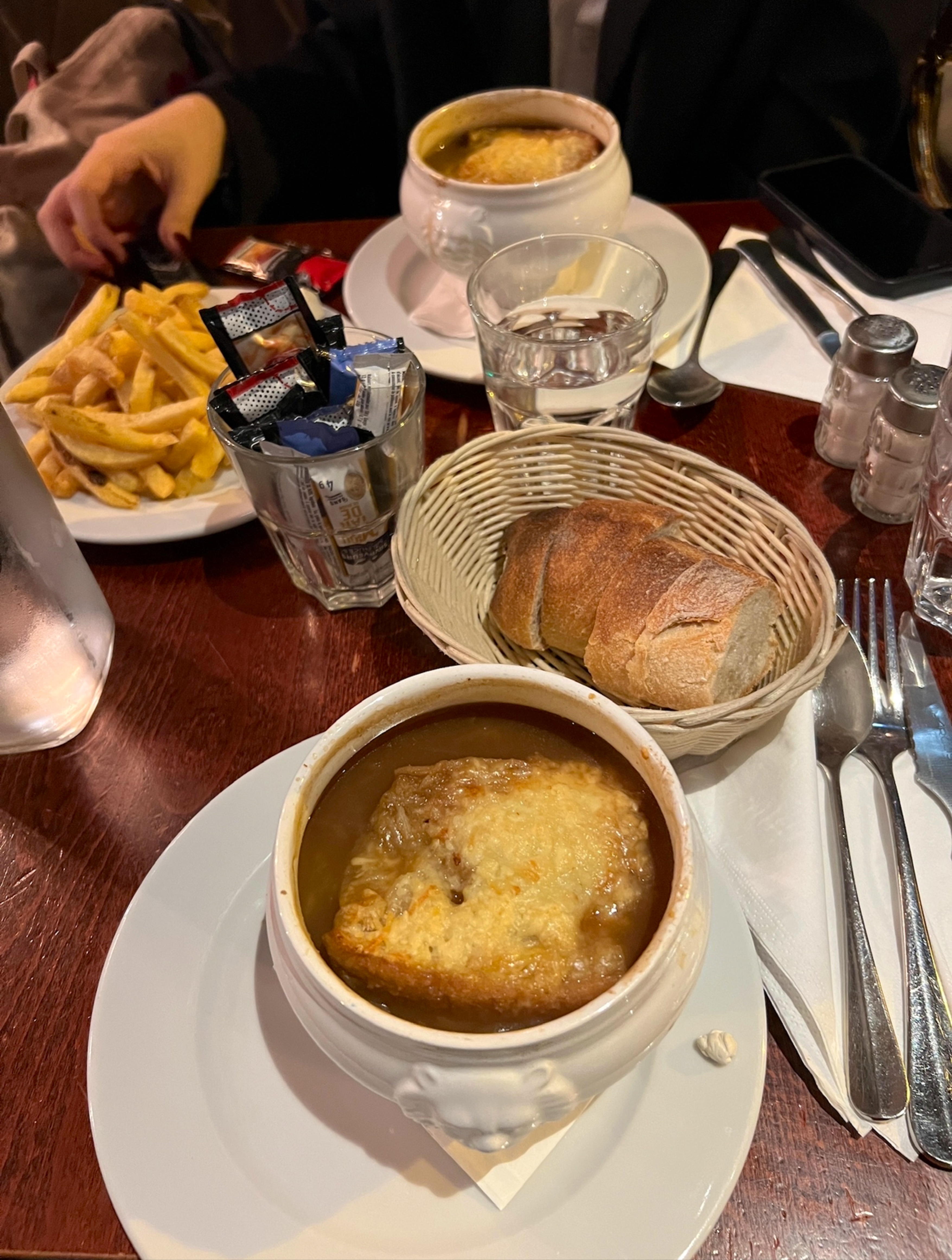 Nous avons eu le Canard Confit, soupe à l'oignon et crème brûlée ! Tellement délicieux, je recommande vraiment le Confit de Canard <3