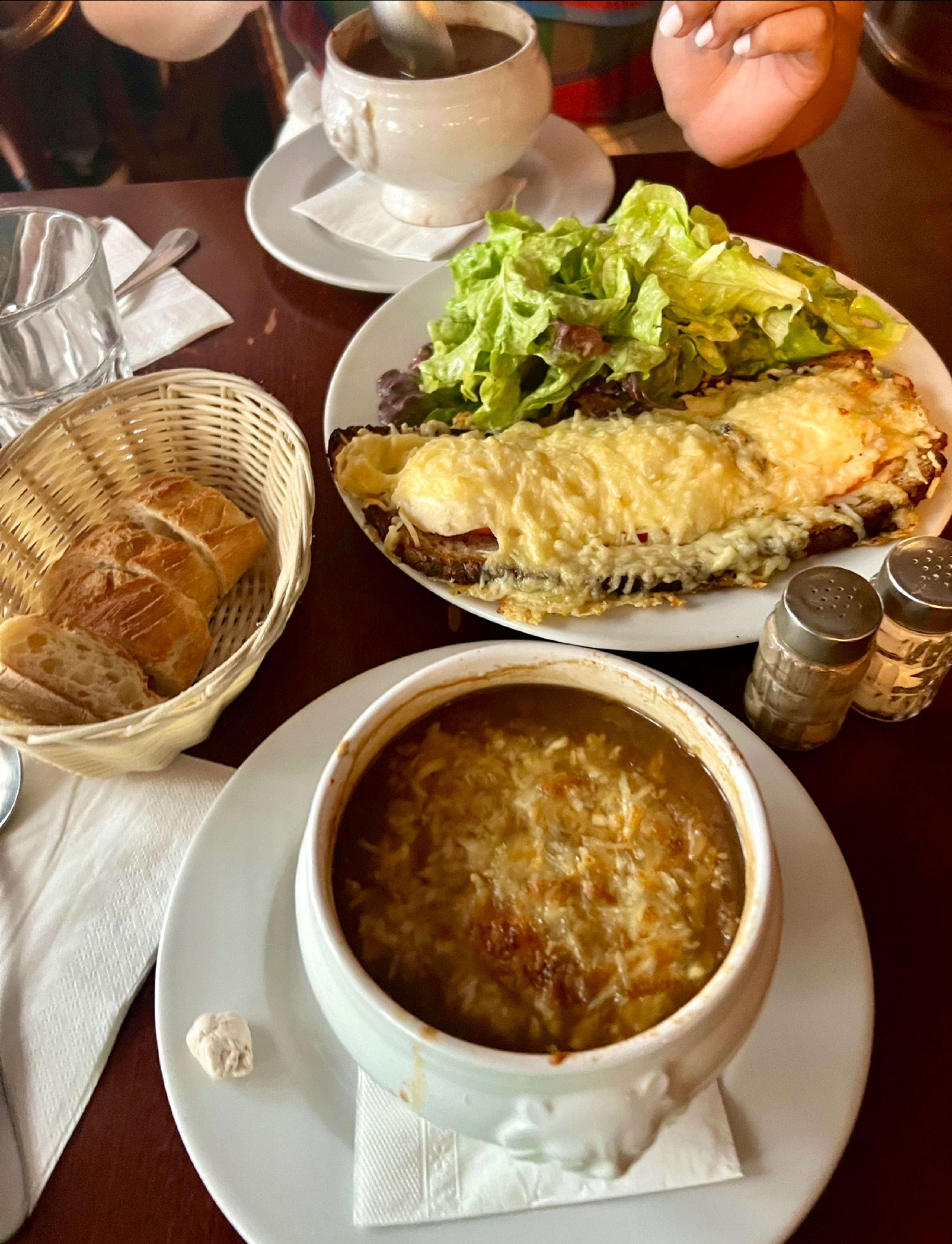 Votre restaurant bistrot parisien cosy par excellence ! Excellente nourriture du début à la fin. Nous avons adoré la soupe à l'oignon française et le steak aux échalotes. Le gâteau au fudge chaud avec de la glace était la finition parfaite. Pour Paris, le coût était d'un bon rapport qualité-prix. Je le recommande vivement !