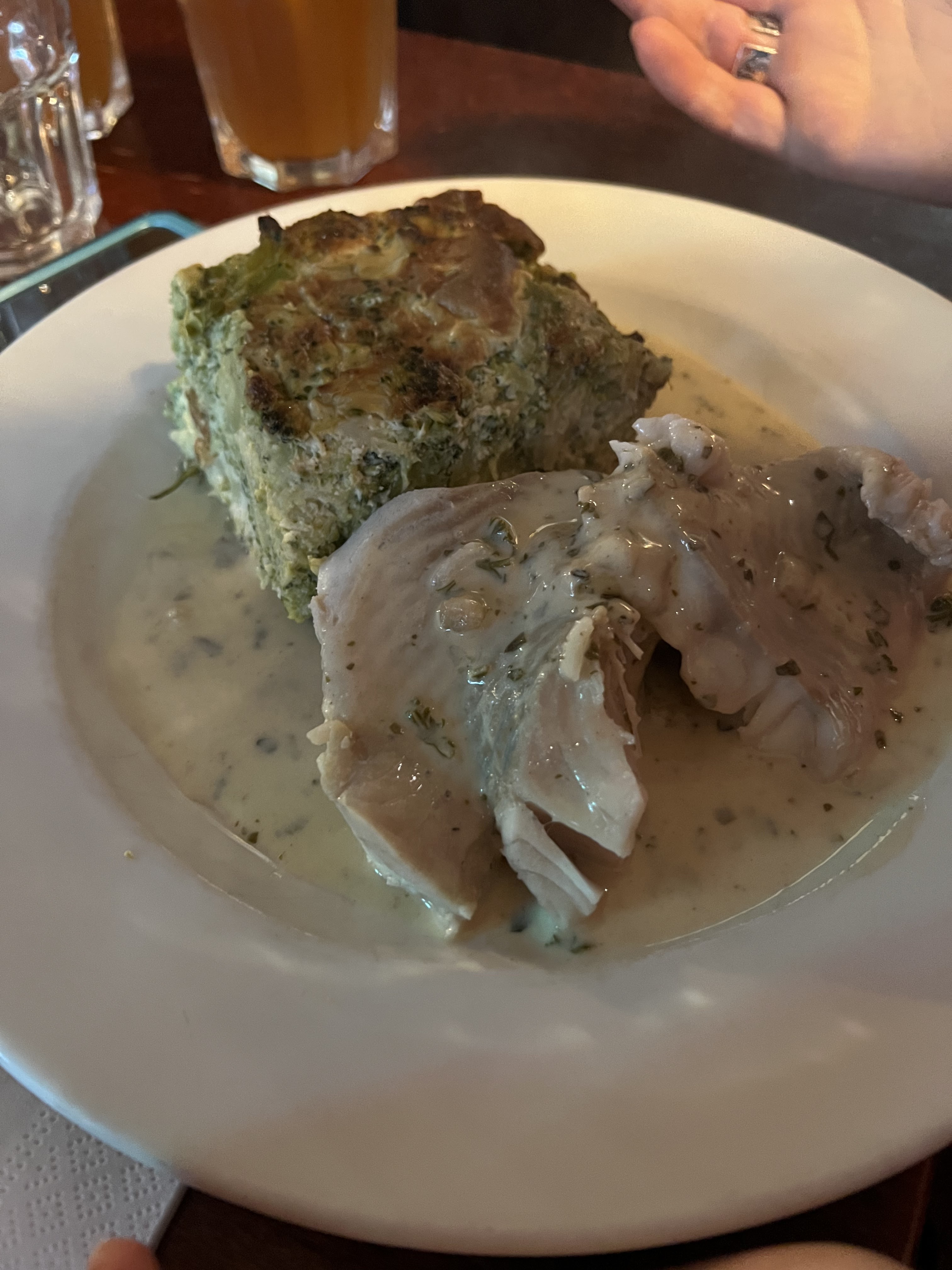Endroit animé de la rive gauche. Il y avait du poulet rôti en sauce avec de la purée de pommes de terre et son partenaire avait de la morue linge avec de la sauce et des épinards. Il y avait un superbe gâteau au chocolat avec de la glace à la vanille. La nourriture était chaude, le service était bon, le prix était bon. Aller!