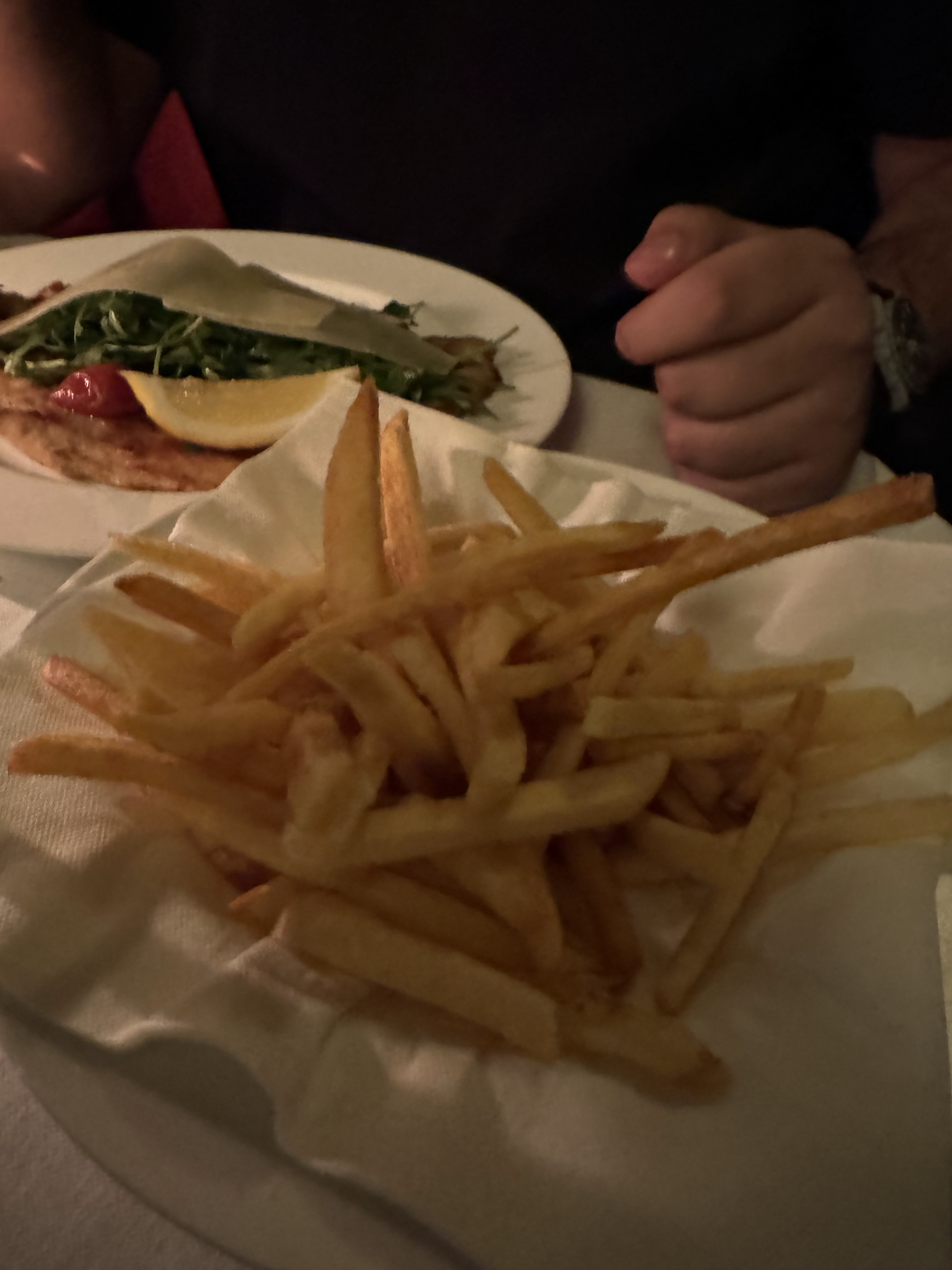 Ok cadre sympa jolie vue Service un peu cool, par exemple j'ai été servi d'une côté de veau -basique - et ayant attendu les frites 10 mn - suite à une erreur de garniture - le garçon me répond ben faut qu'elle cuisent les frites ! Classe !