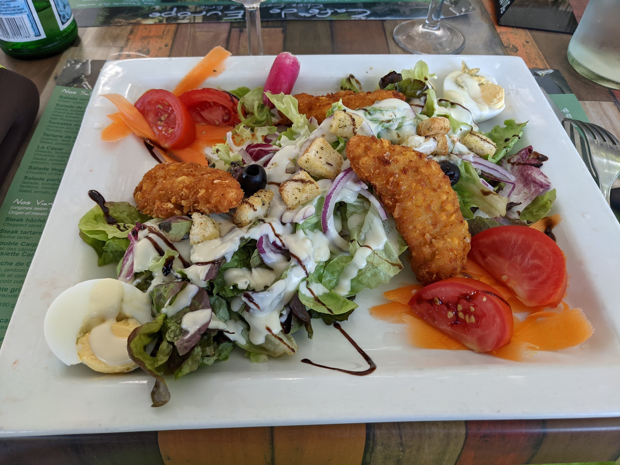 Nous avons très bien mangé. L'escalope de dinde milanaise était tendre et pas sèche avec salade et frites extra. Une serveuse aimable. De plus, déjeuner en terrasse avec un beau soleil de printemps, que demander de plus...