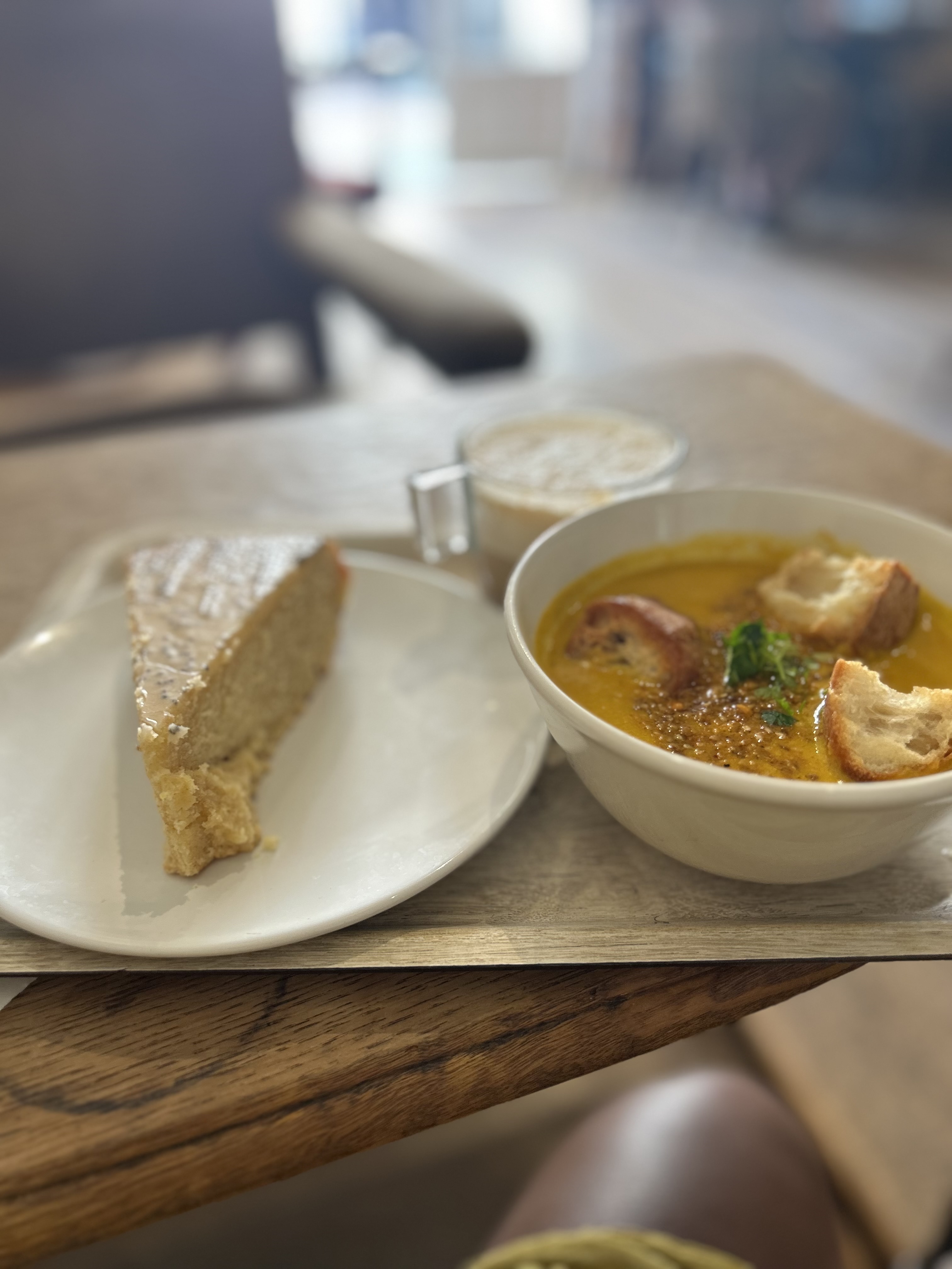 Le café était sympa. Il y avait un peu de monde, mais la dame à la caisse était très observatrice et a remarqué que je ne parlais pas français. Elle a compris à distance ce dont j'avais besoin et a dit à l'une des dames de me procurer une boîte à emporter.