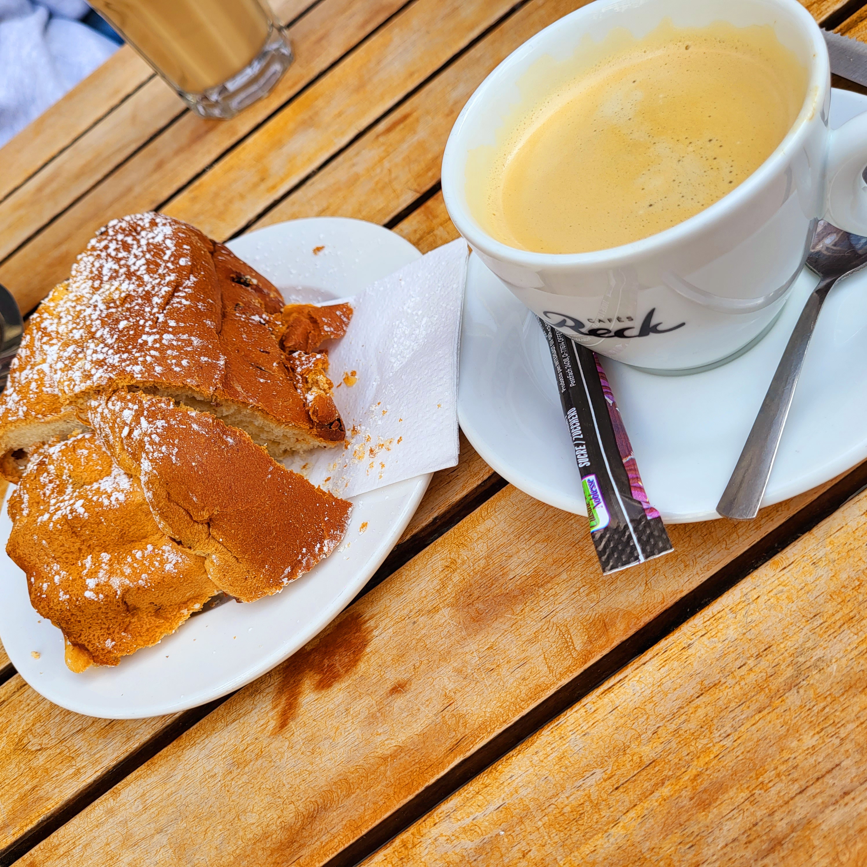 Petit-déjeuner alsacien en terrasse. Le service a été sympathique. La terrasse est agréable malgré le monde. Le café allongé et le latte machiato ont été très bons. Le Kougelhopf était en revanche un peu sec.