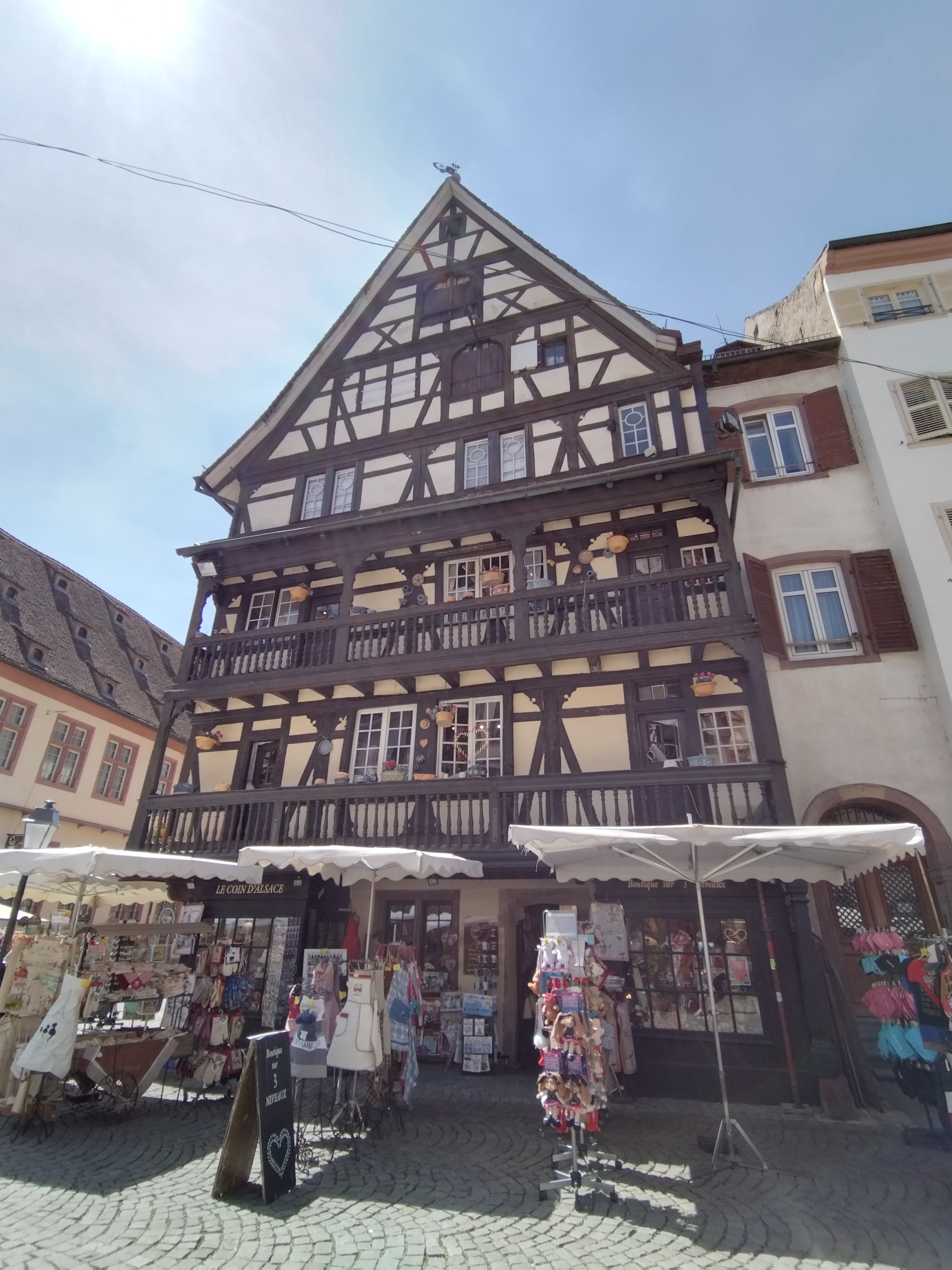 Terrasse agréable au pied de la Cathédrale Patisserie et salon de thé avec vue sur les maisons alsaciennes a colombages Jeune serveuse sympathique qui nous a gentiment proposé de nous prendre en photo Nous étions à l'ombre des grands parasols au pied d'un beau rosier Je recommande cet endroit charmant au coeur de la capitale Alsacienne Pâtisserie Salon de thé Glaces et restaurant