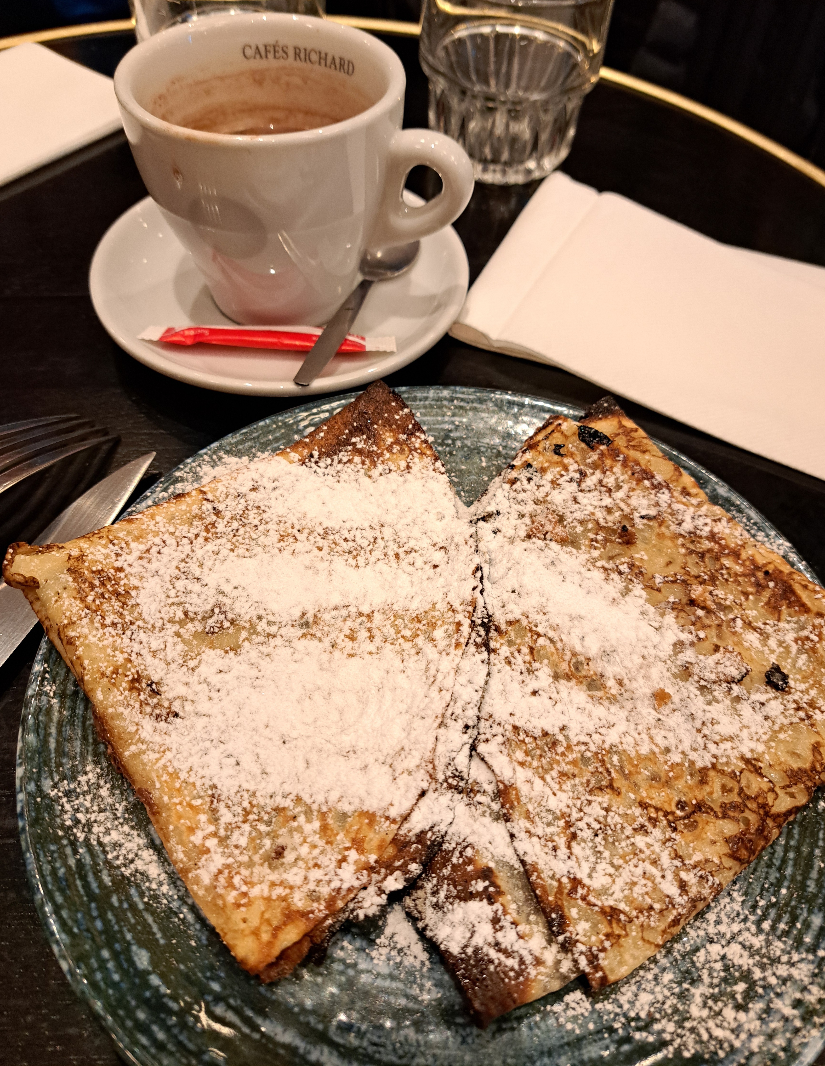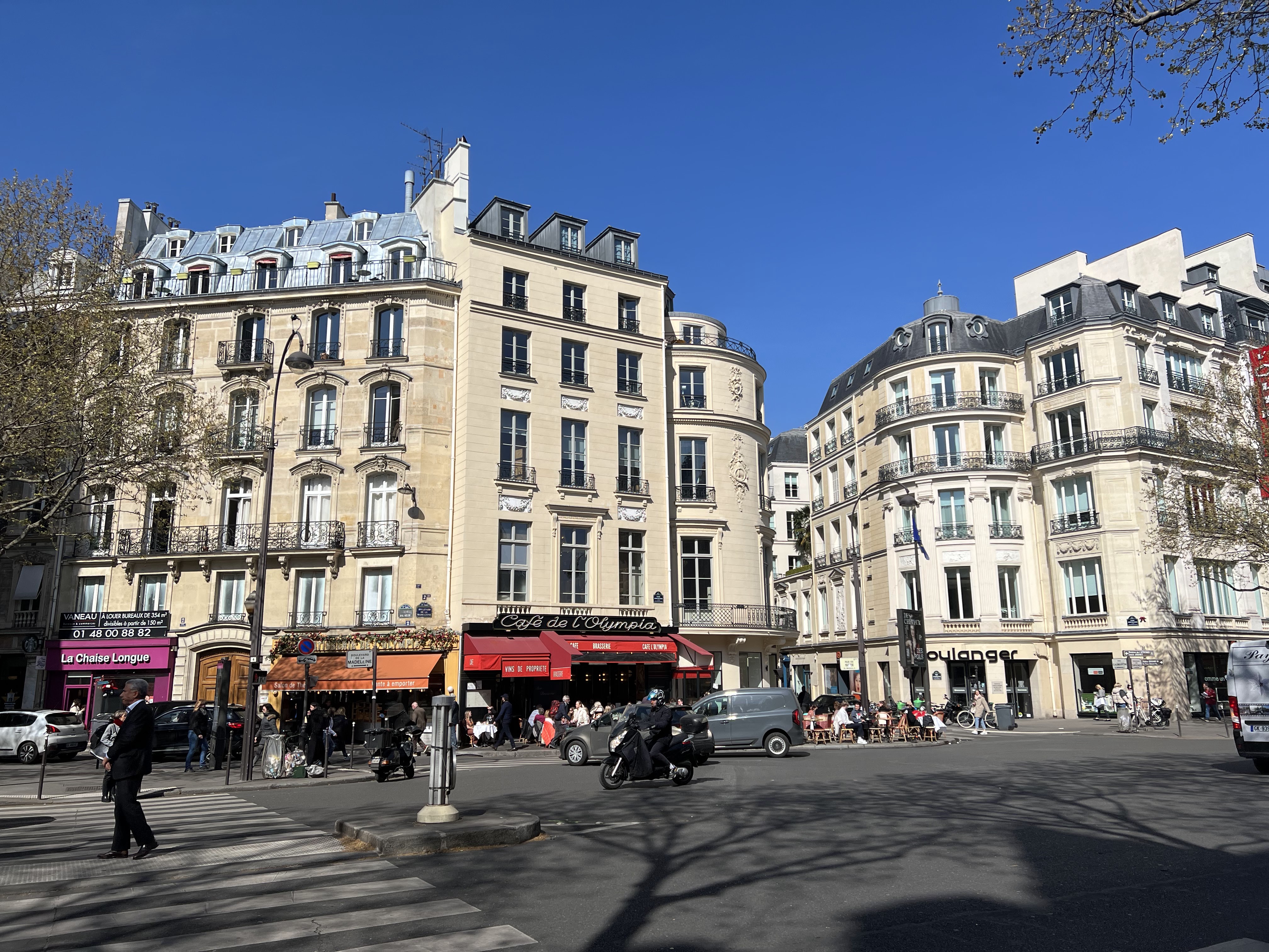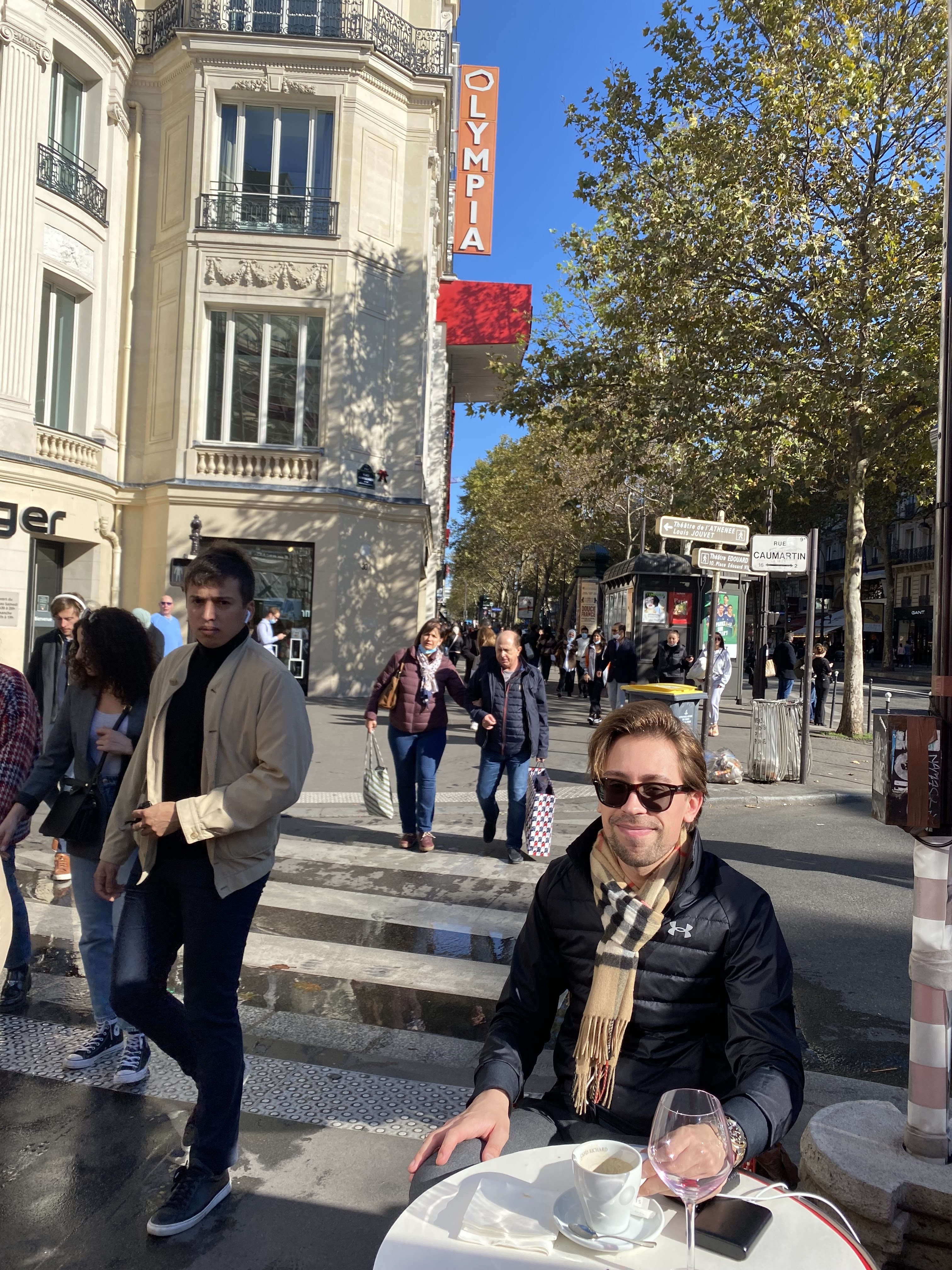 Café de l'Olympia qui n'a de café que le nom car apparemment ils arrêtent de servir des boissons chaudes après 18h (en tout cas pour notre table et pas celle de derrière qui se sont vus servir un cappuccino 5 min après nous).