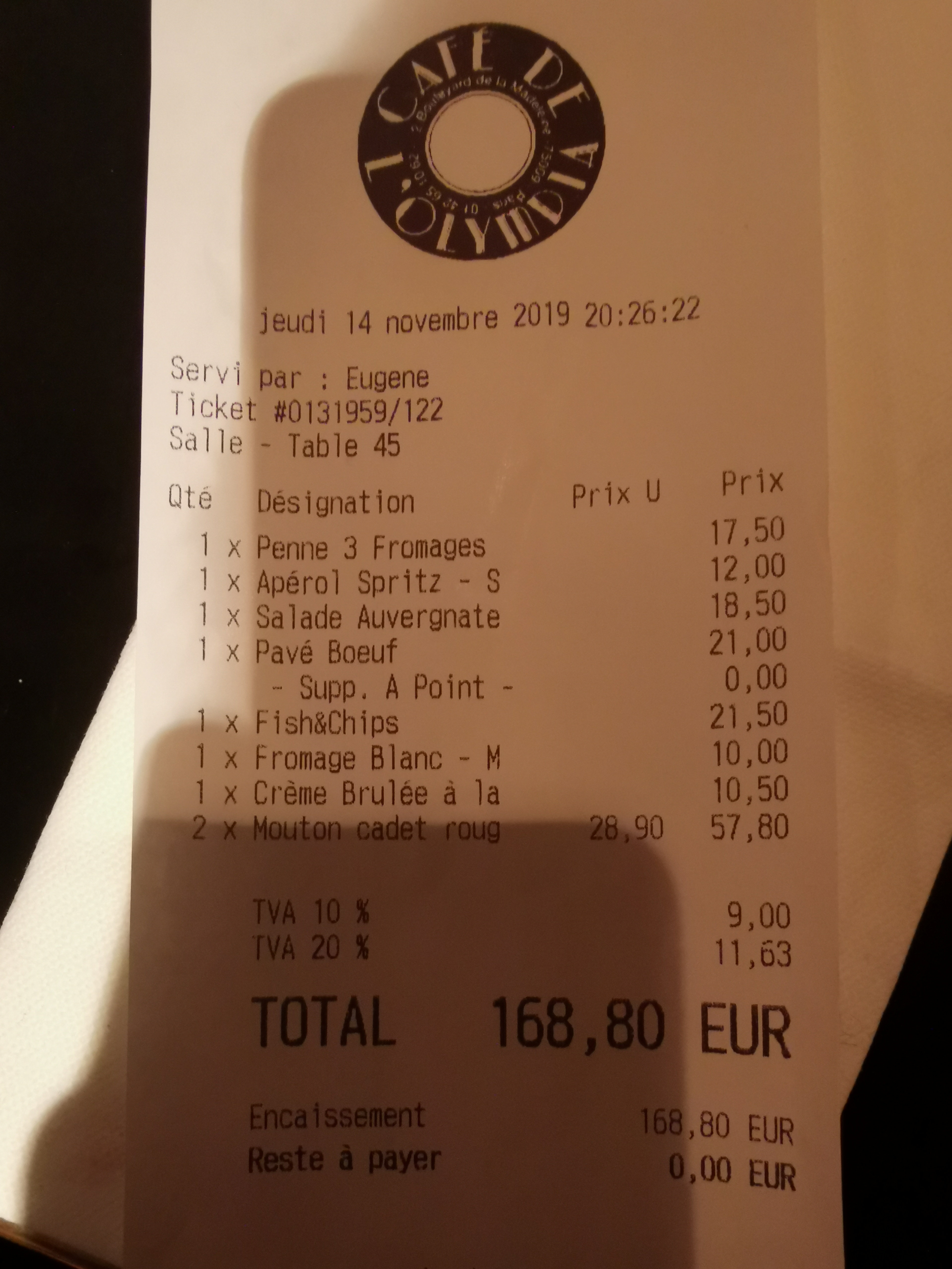 Aucun intérêt si ce n’est la proximité avec l’Olympia. Service expéditif et indifférent, cuisine médiocre. Très cher ! 24€ les pennes à la carbonata , 16€ le croque - monsieur, c’est franchement exagéré ! . On mange beaucoup mieux dans les grandes brasseries …