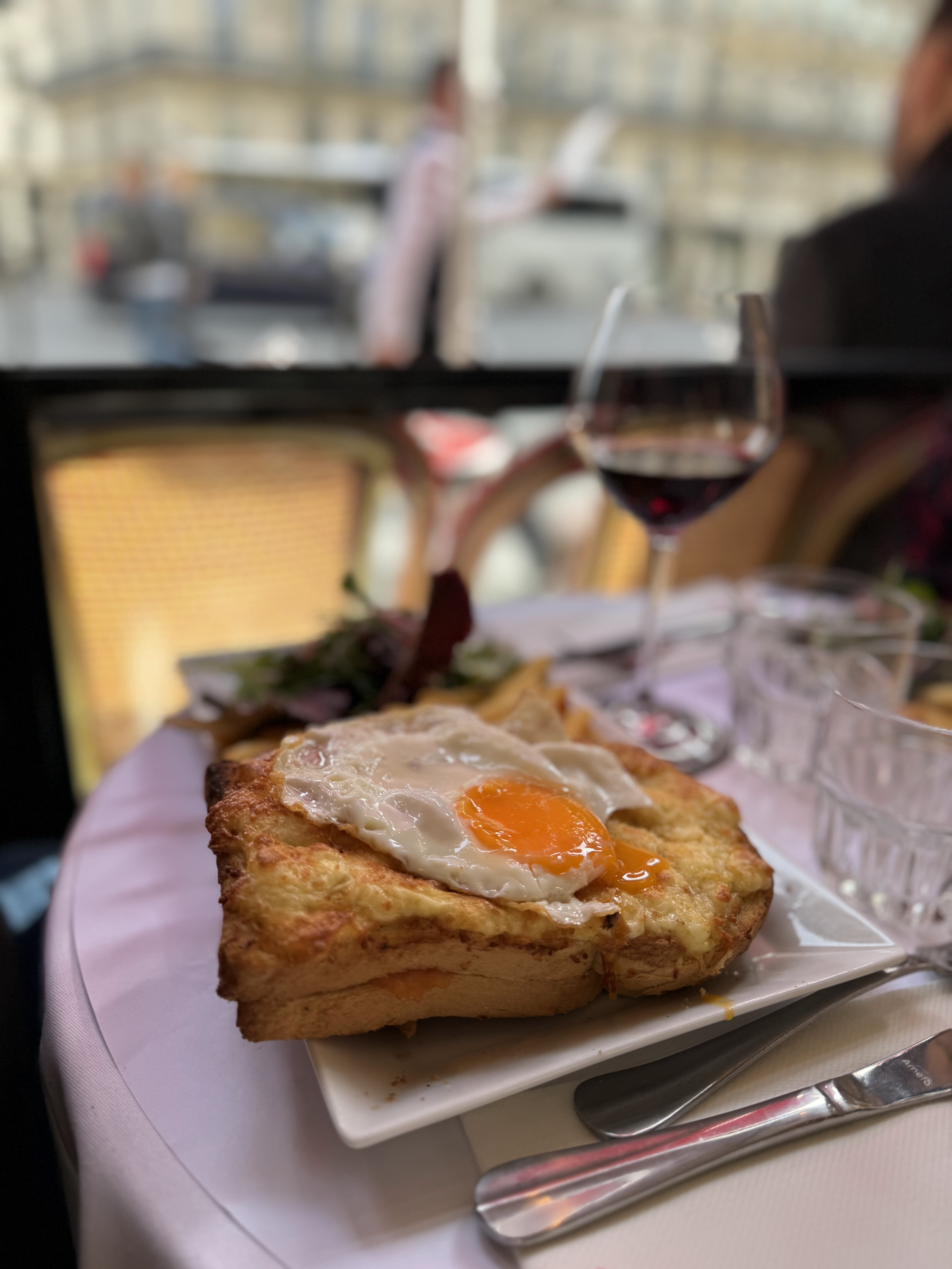 Charmante expérience de café en bord de rue près de l'Opéra et des Galeries Lafayette. Ma salade océan (saumon fumé, gambas) était superbe et ma compagne a apprécié son croque monsieur. Notre serveur était efficace (comme il se doit, étant donné l'heure du déjeuner) mais très sympathique et compréhensif envers nous, les touristes. Incroyable observation des gens !