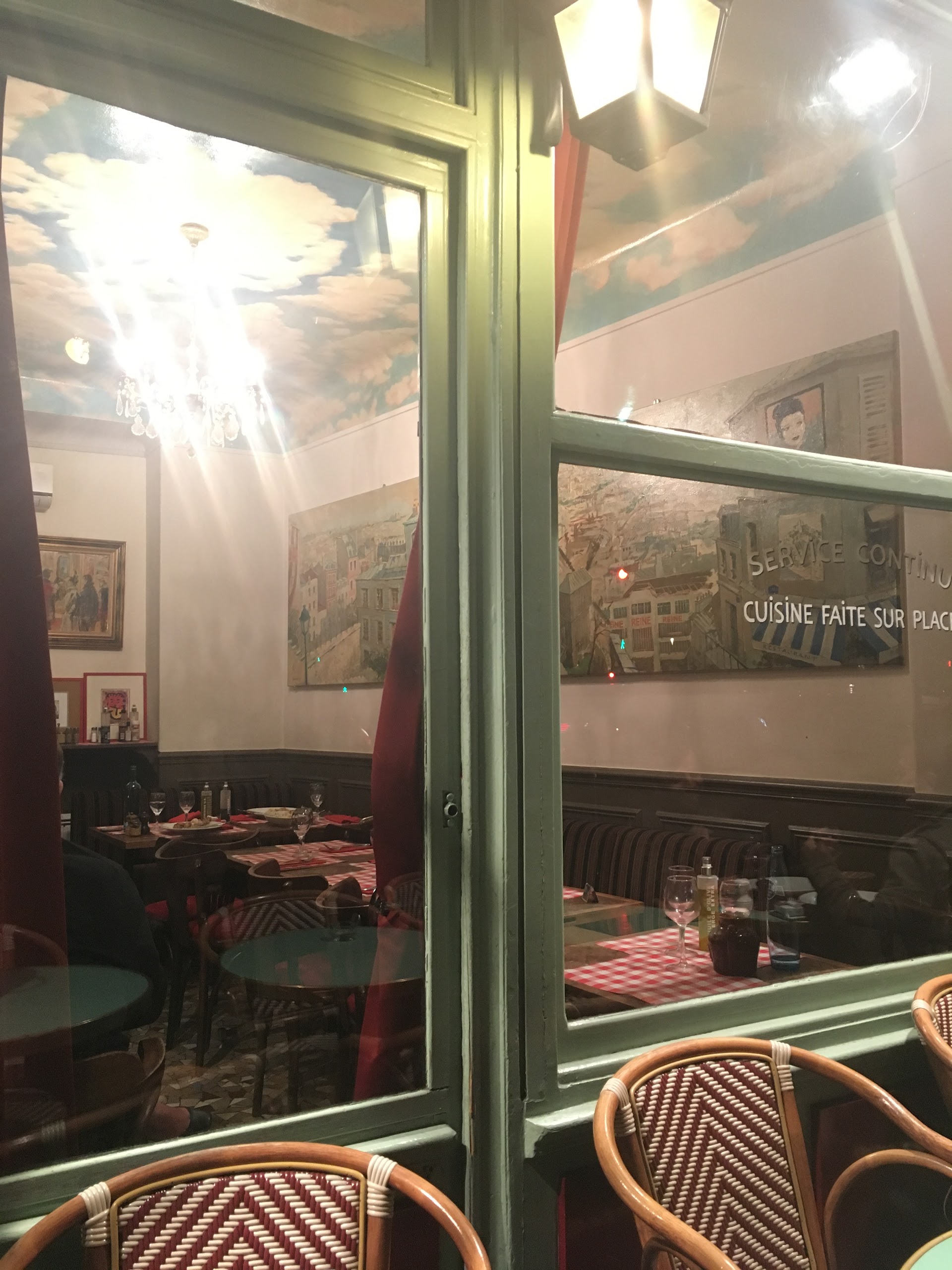 ❝ Ce petit bistrot typique sert une cuisine française traditionnelle et maison sous une fresque de nuages. ❞