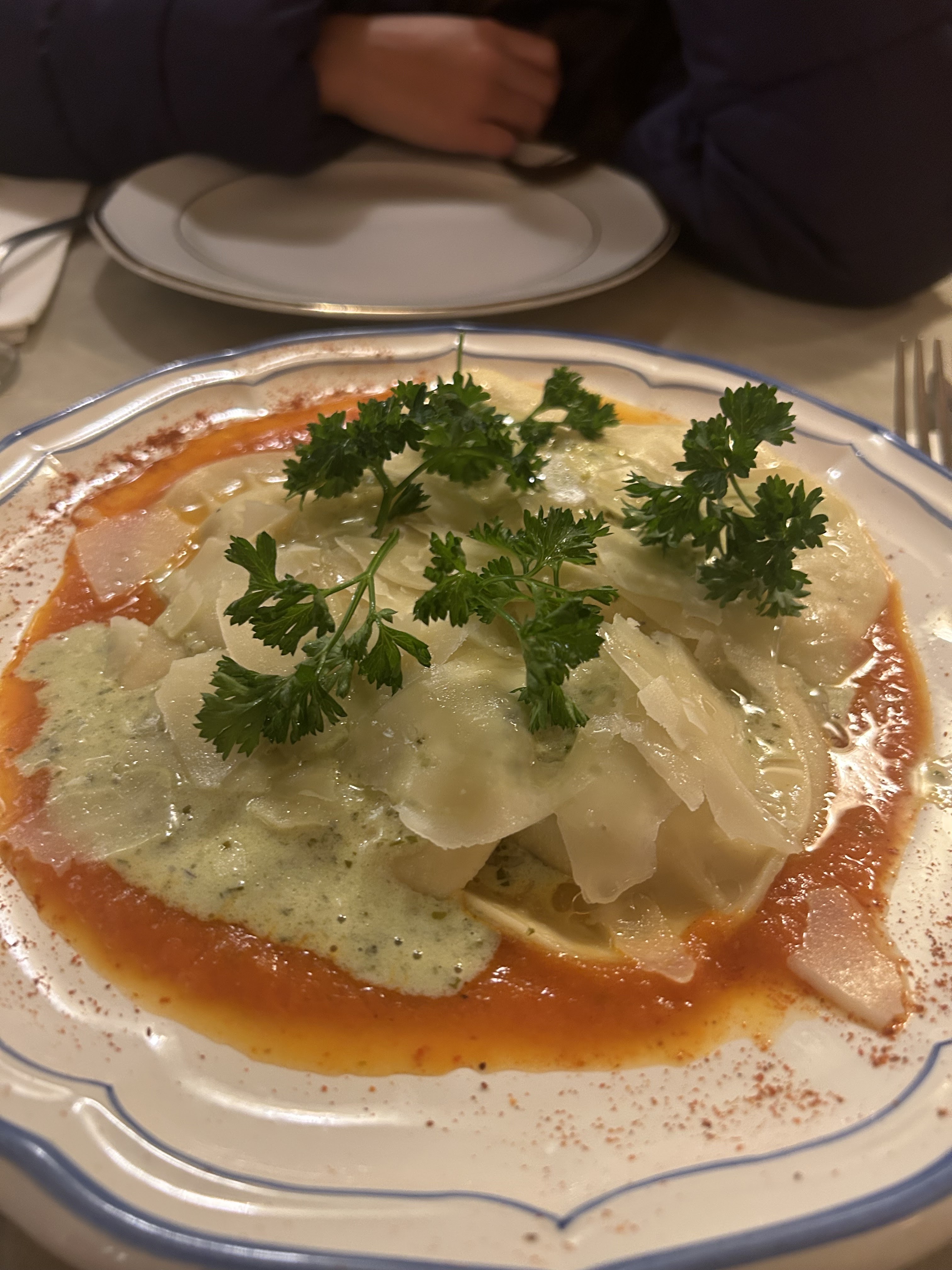 Personnel sympathique, y compris le chef lui-même, décor et ambiance agréables, carte des vins attrayante, mais surtout, nourriture incroyable ! Les escargots étaient délicieux dans une sauce au pesto à l'ail et, pour mon repas principal, j'avais du veau avec des nouilles tagliatelles et une sauce au fromage à veines bleues. Le veau était le meilleur que j'ai jamais mangé : une perfection absolue - juteux, succulent et tendre. Un petit bijou de restaurant !
