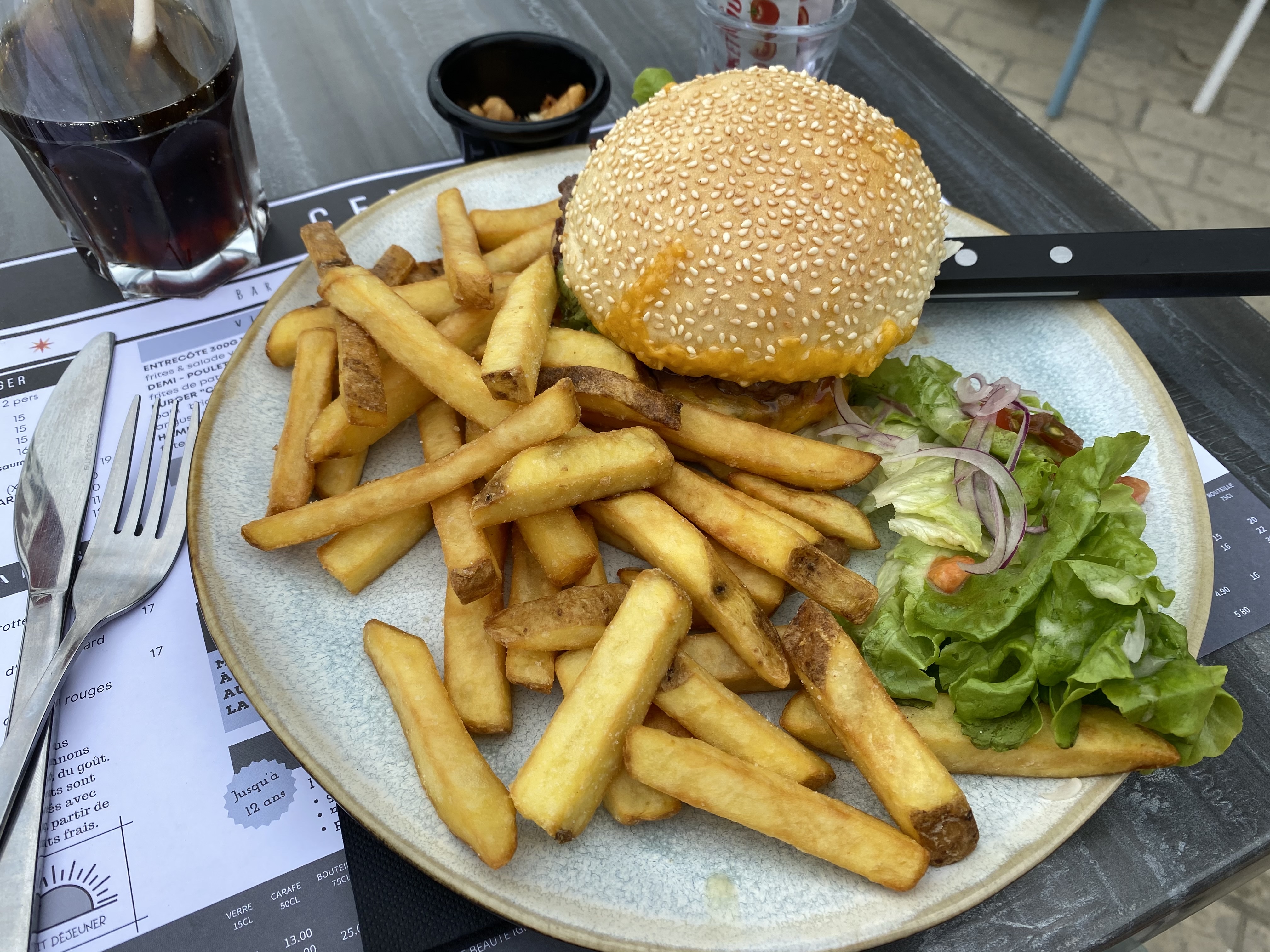 Serveur sympathique! La cuisine une catastrophe!!! On a pris un burger qui n'était pas appaitissant, un steak et du pain! Pire burger que j'ai jamais mangé! Seul point positif les frites maison! Dommage car restaurant bien situé et cela pourrait cartonner! Franchement passez votre chemin!