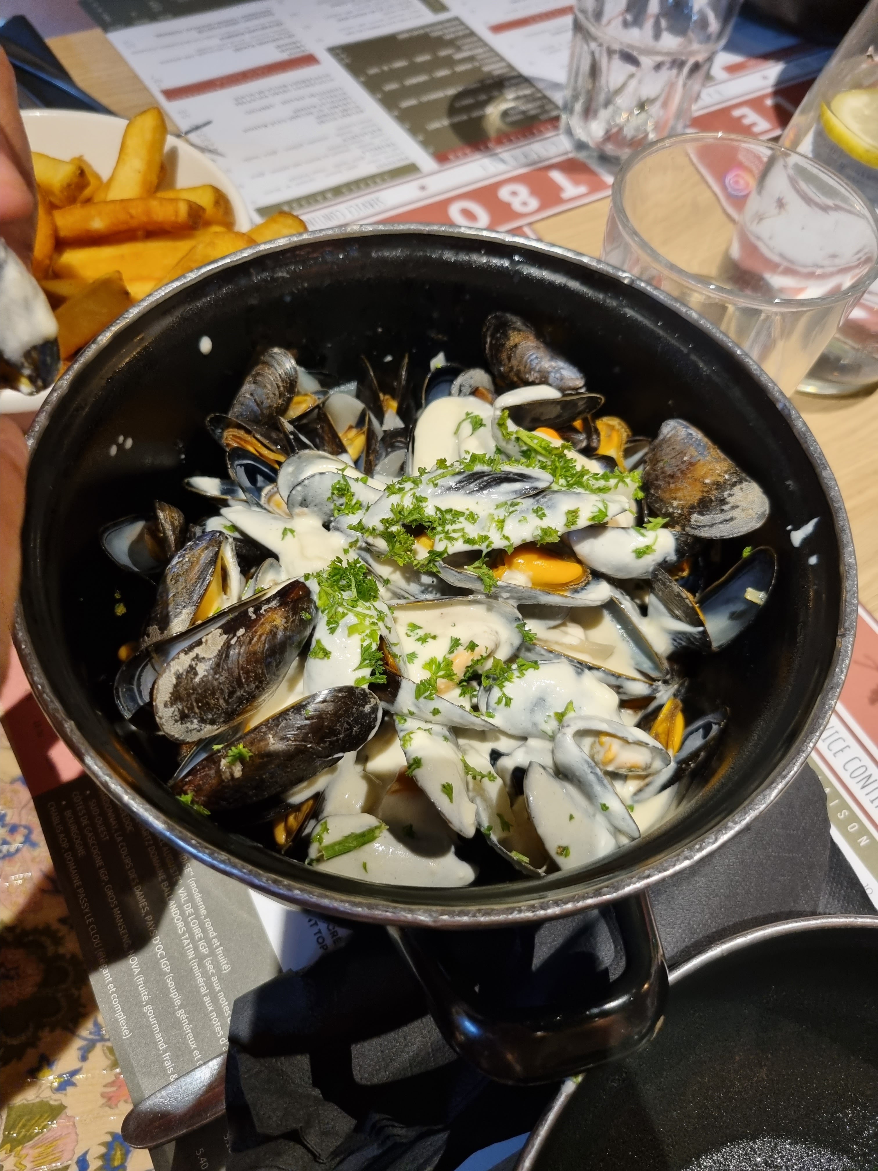 Moules frites....le tout froid. la sauce est industrielle, les frites congelées. Aucun intérêt. Les serveurs sont sympathiques c'est déjà ça. A quelques mètres la brasserie propose des moules thaï très bonnes!!!
