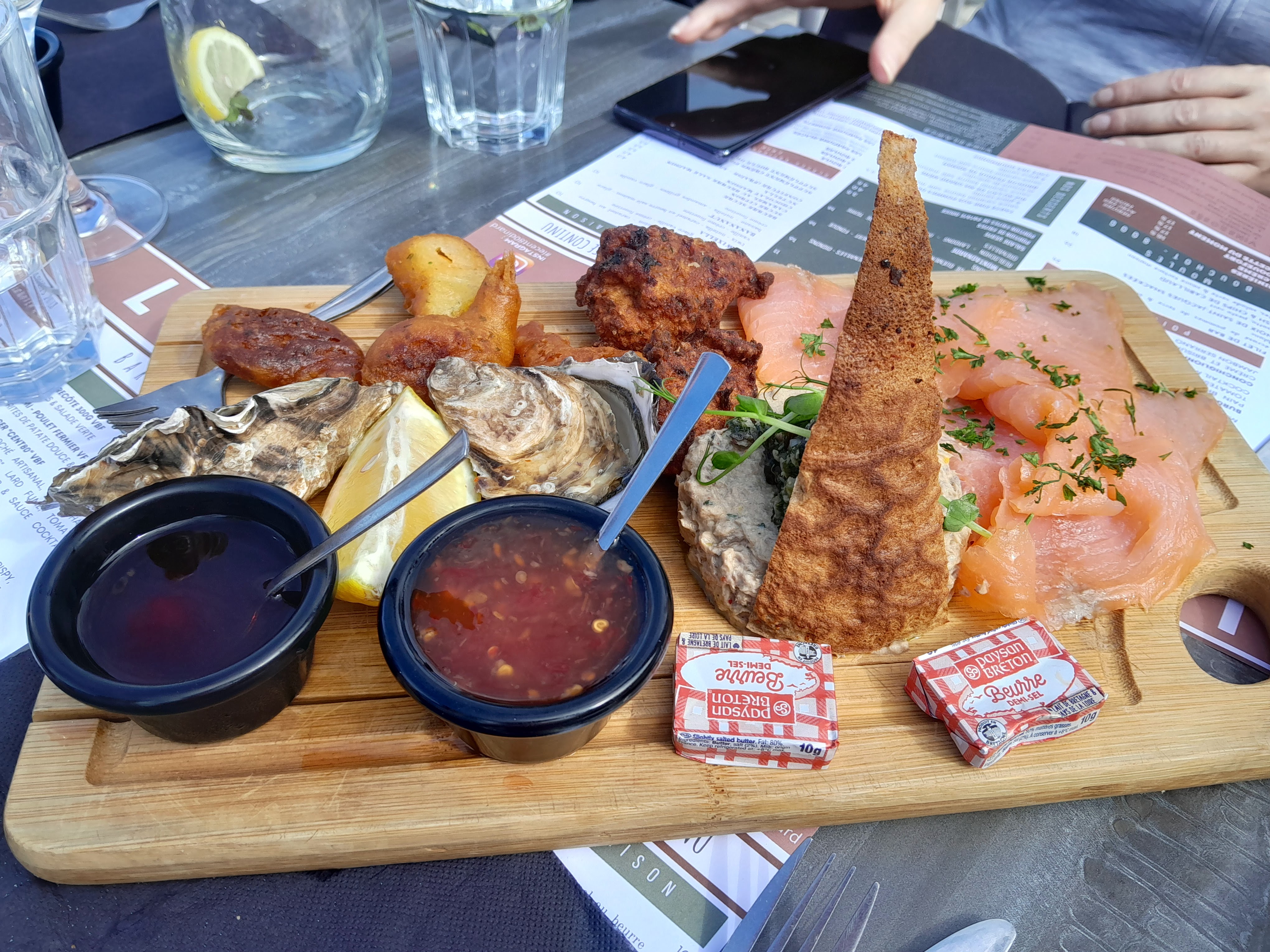 Super déjeuner, le plateau mix, le bar et le pti mojito juste deliicieux. En revanche les galettes sont peu garni dommage. Mais cadre et serveur super. Bonne fin d'été