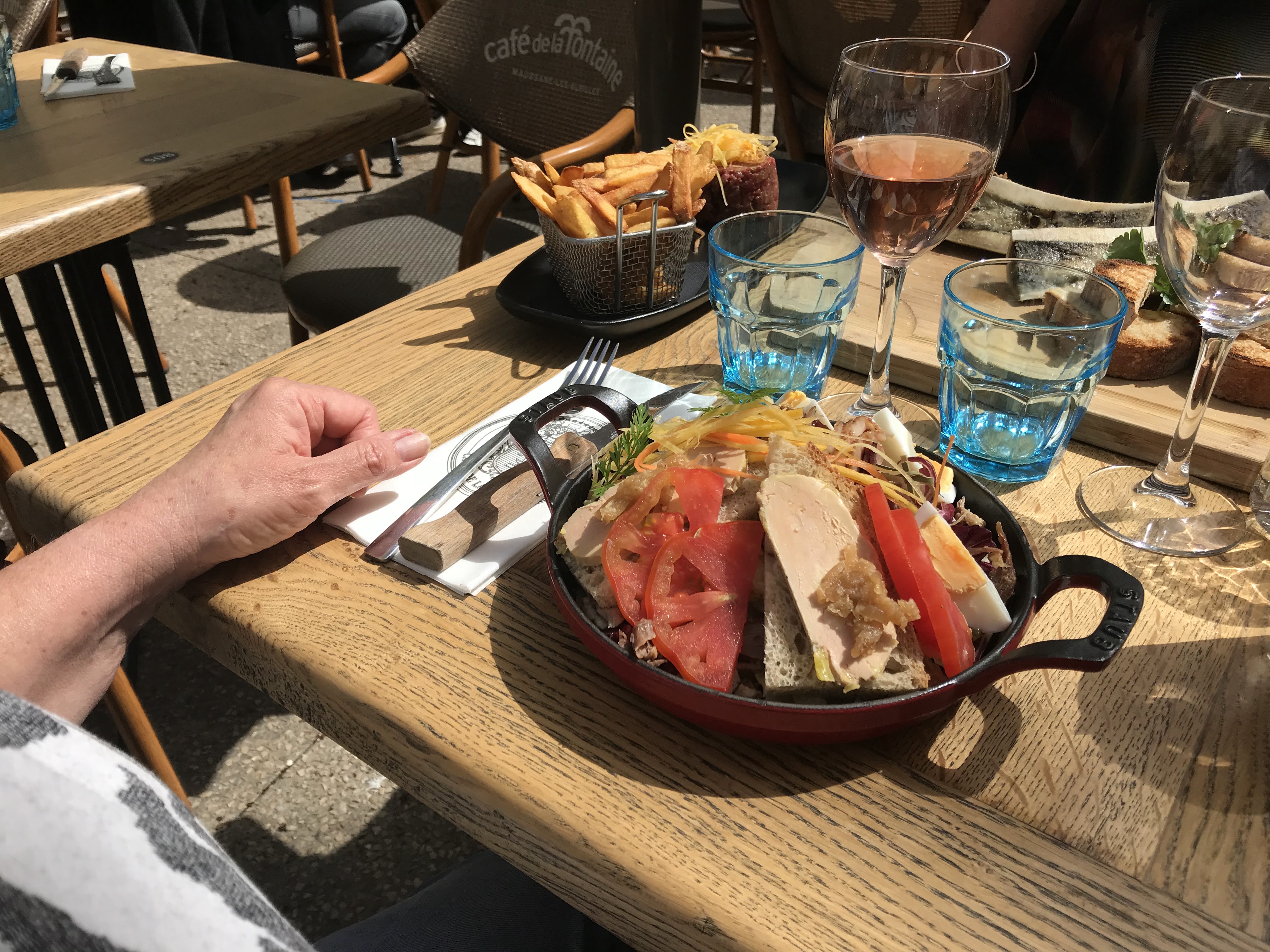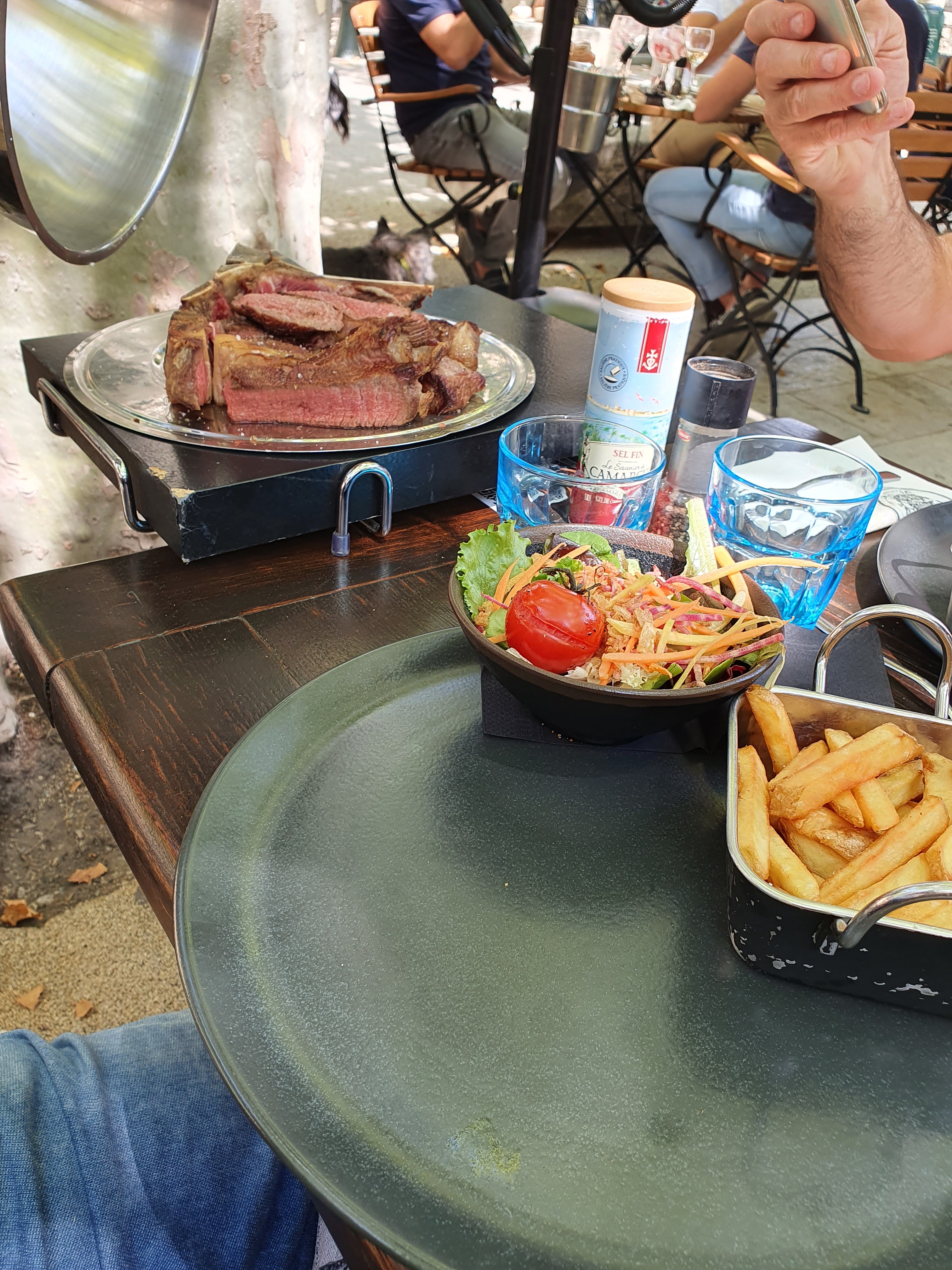 Un petit bistrot de plein air sur la place de Maussane, endroit parfait et agréable mais nos 2 onglets de boeuf étaient trop durs, hélas décongelés et qui rendaient encore leur eau dans l’assiette, dommage !