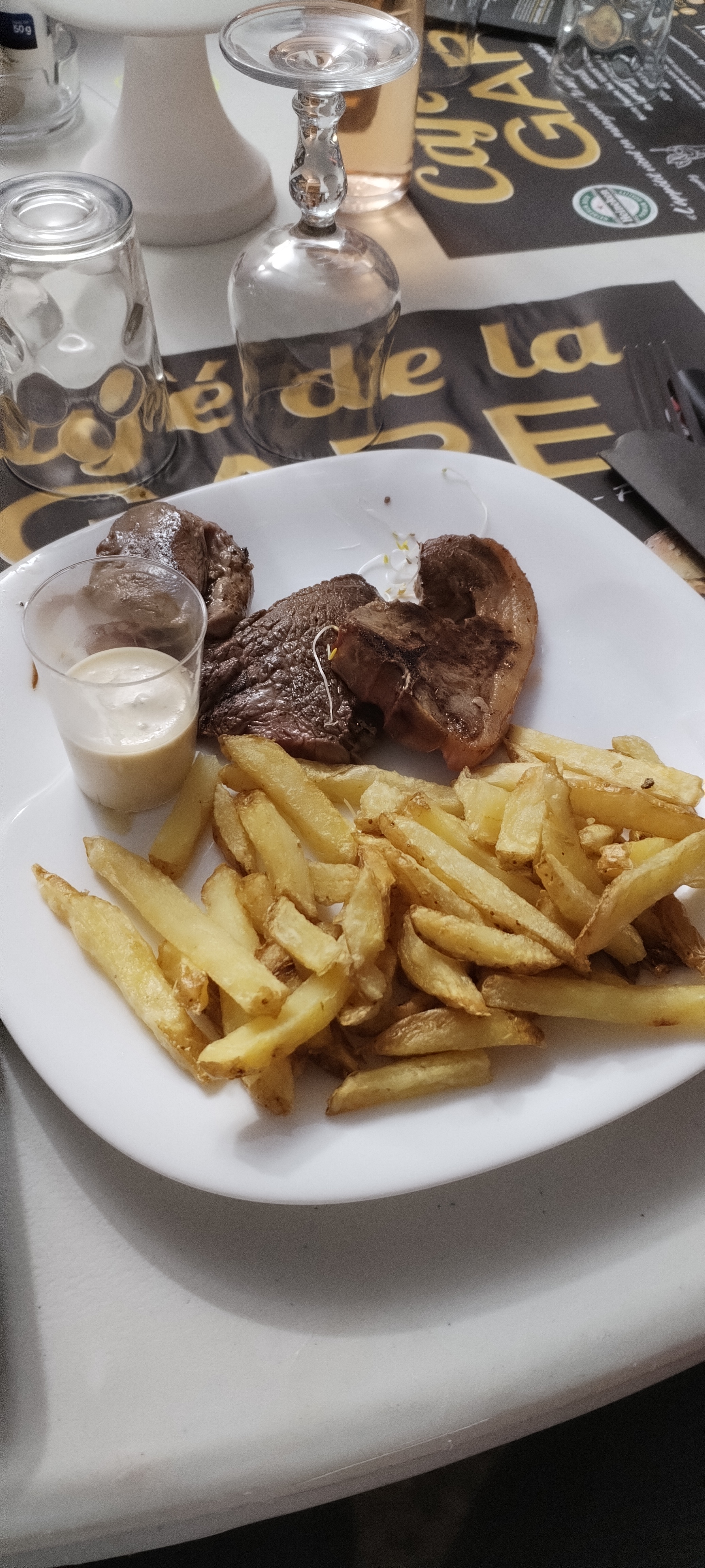 Bon accueil.. Bon rapport qualité-prix pour les menus.. Gigot d’agneau et frites maisons délicieux !!! Déjeuner en terrasse agréable.. Bref, on y retourne avec plaisir ….😉😋