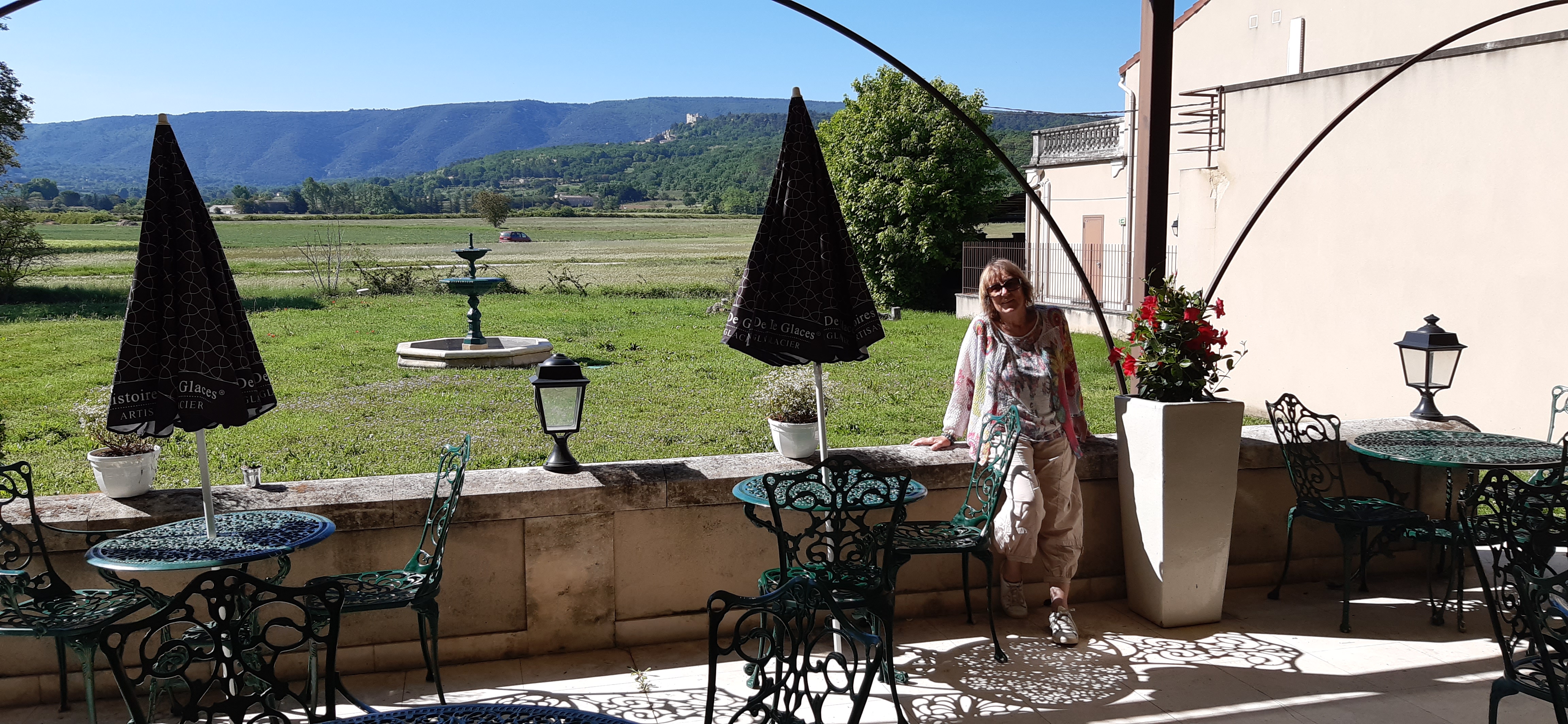 Chouette petit coin sur la terrasse derrière cette ancienne gare sur le début de Bonnieux, le cabillaud sur la plancha était délicieux