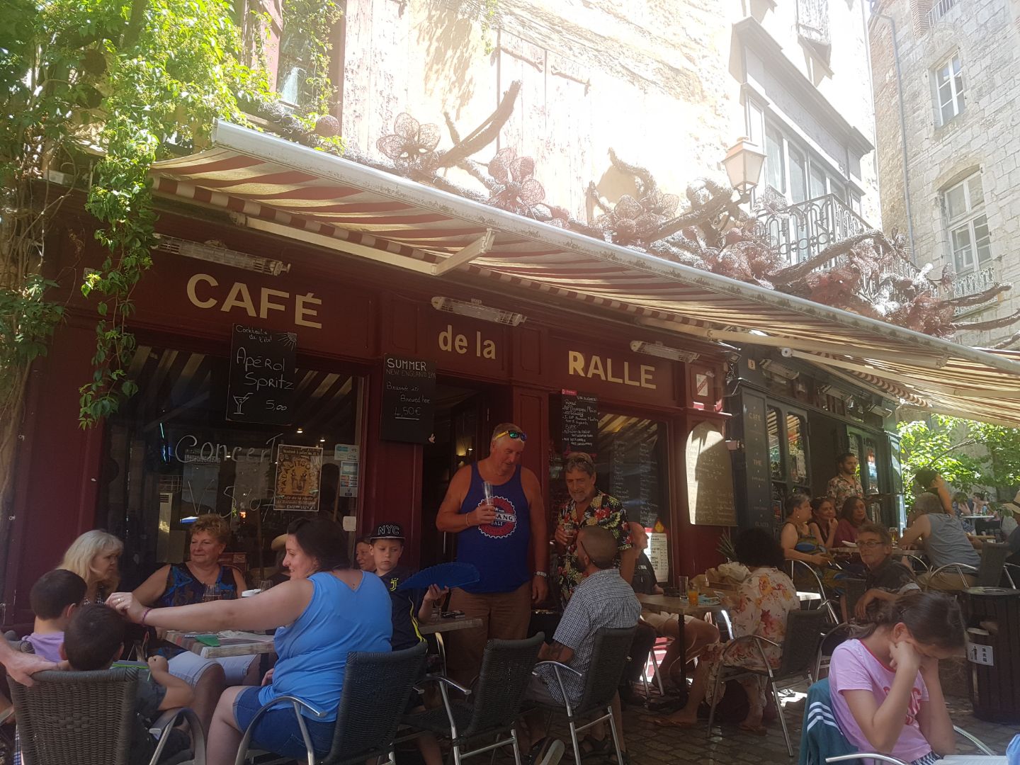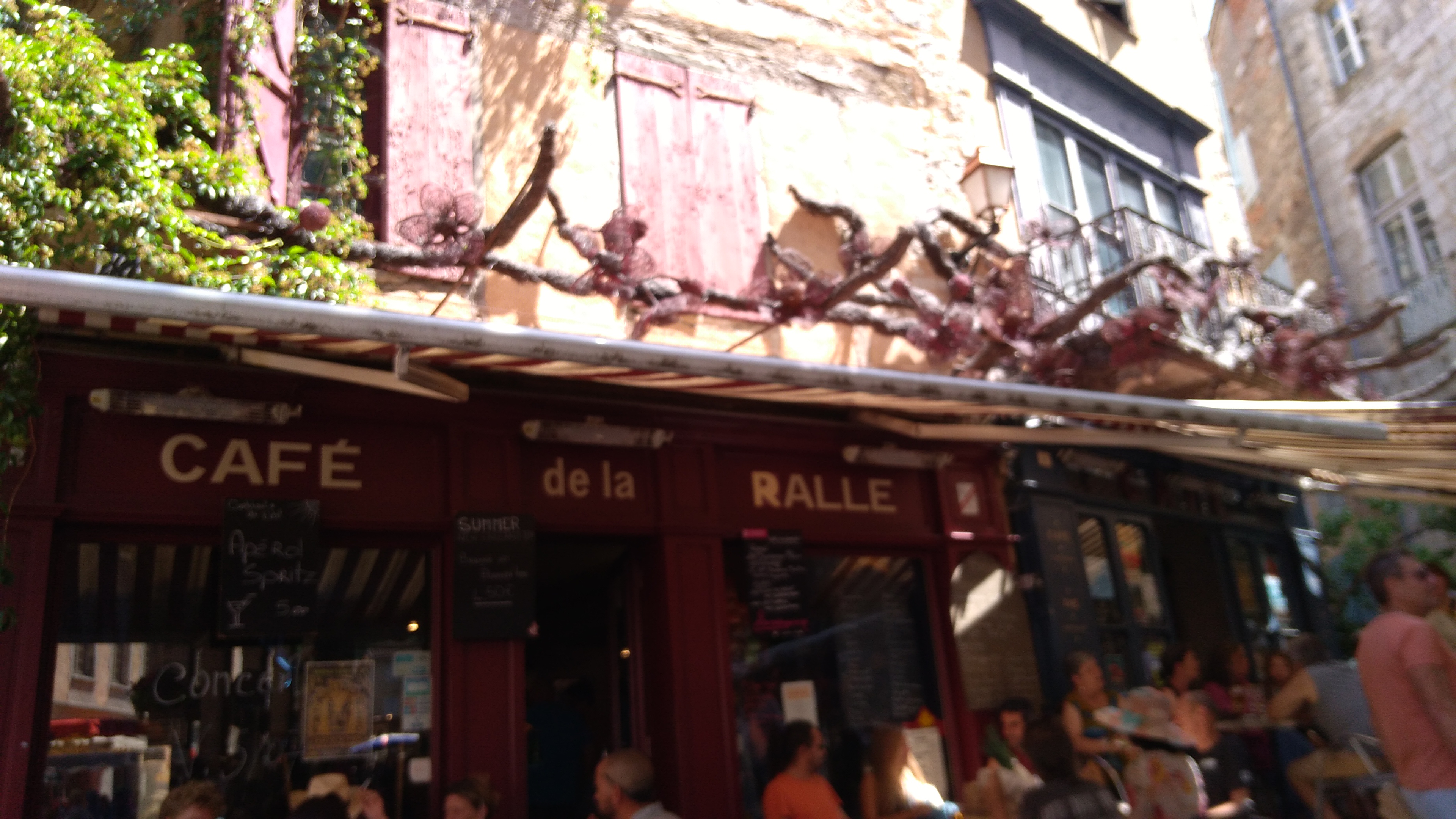 Bistro iconique de Saint Antonin où cohabitent artisans locaux sympas, avec bobos écolos , retraités nantis et touristes béats..