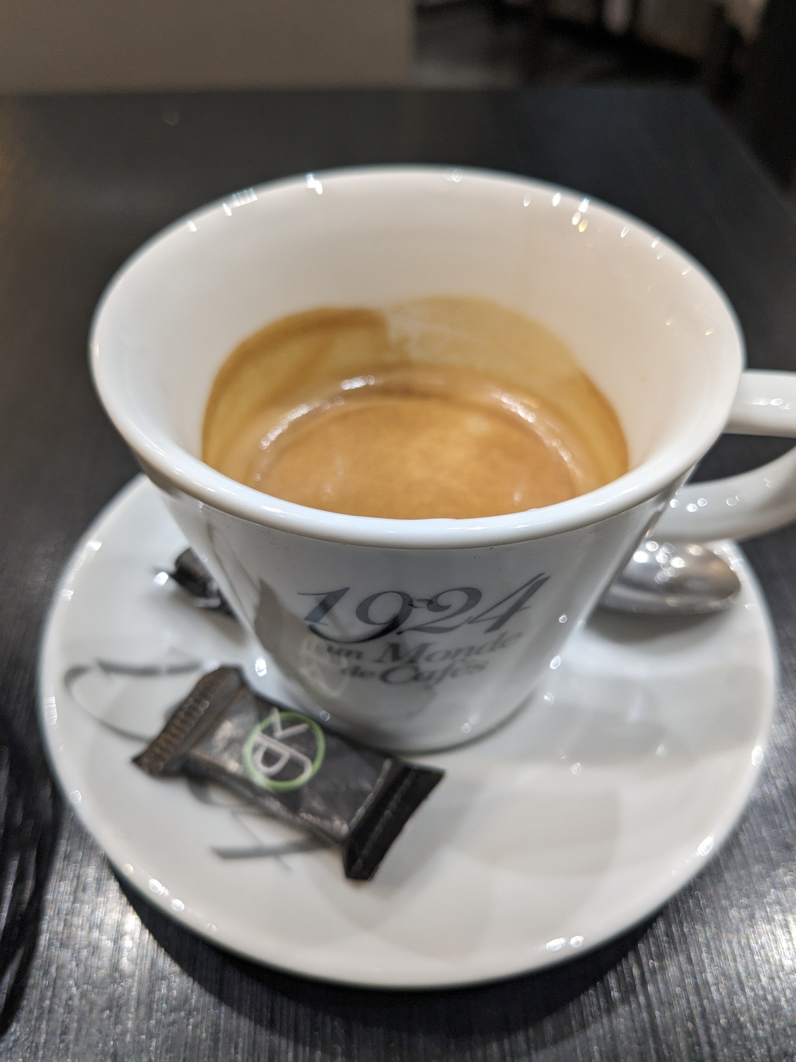 Il n'y avait pas trop de monde quand j'y suis allé, mais j'avais vraiment l'impression que je n'y étais pas le bienvenu. Le double expresso était bon et le pain au chocolat était bon, ni l'un ni l'autre n'étaient excellents mais au-dessus de la moyenne.