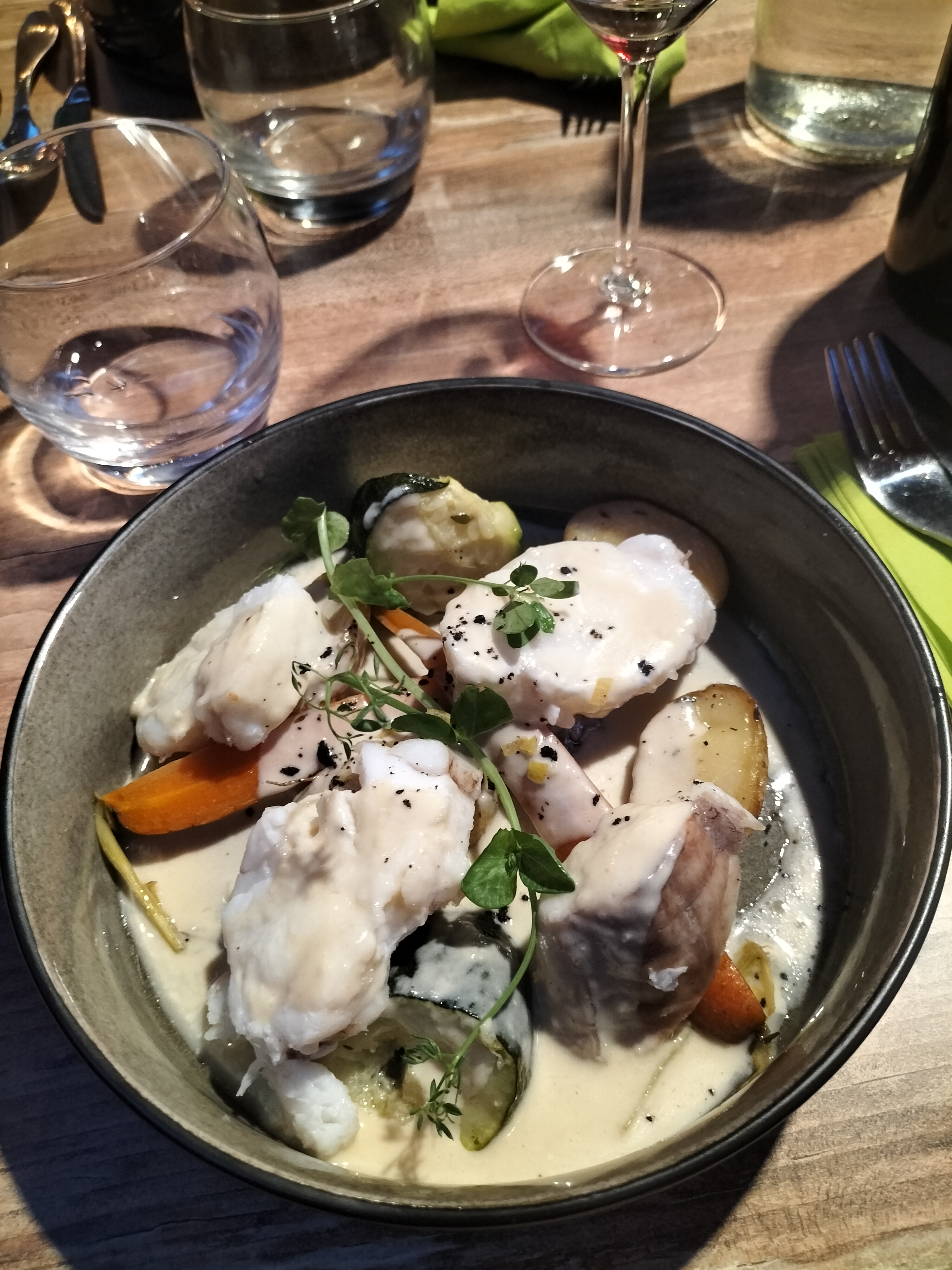 Entrée très bonne, boudin crème pommes de terre,pièce de boucher tendre,frites trop grillé,mon amie a choisi la morue,trop salé, une cliente l'a renvoyé,il faut apprendre a la desale, café liégeois excellent,le verre de vin imbuvable