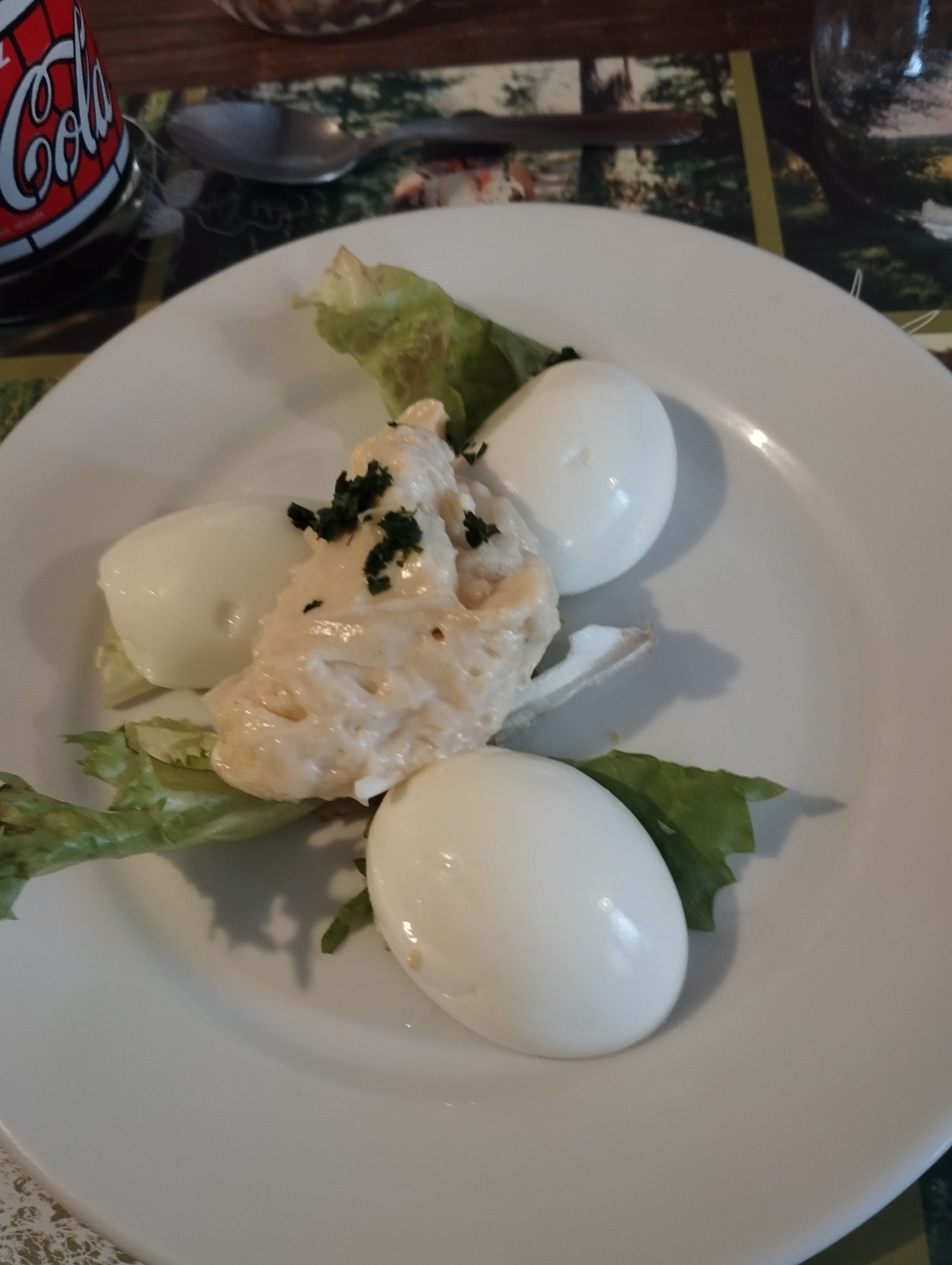 Après cet fait rembarrer du restaurant Le vieux four qui se trouve à quelques kilomètres nous avons déniché ce café, restaurant, épicerie dans un petit village. L'accueil a été fort agréable et nous avons déjeuner entrée, plat et dessert pour 15 euros chacun. C'est une bonne cuisine familiale avec un maximum de produits de la région. Arrêtez vous si vous passez par là mais téléphoné avant pour savoir s'il on de la place car quand c'est bon et pas cher ça se dit vite 😉
