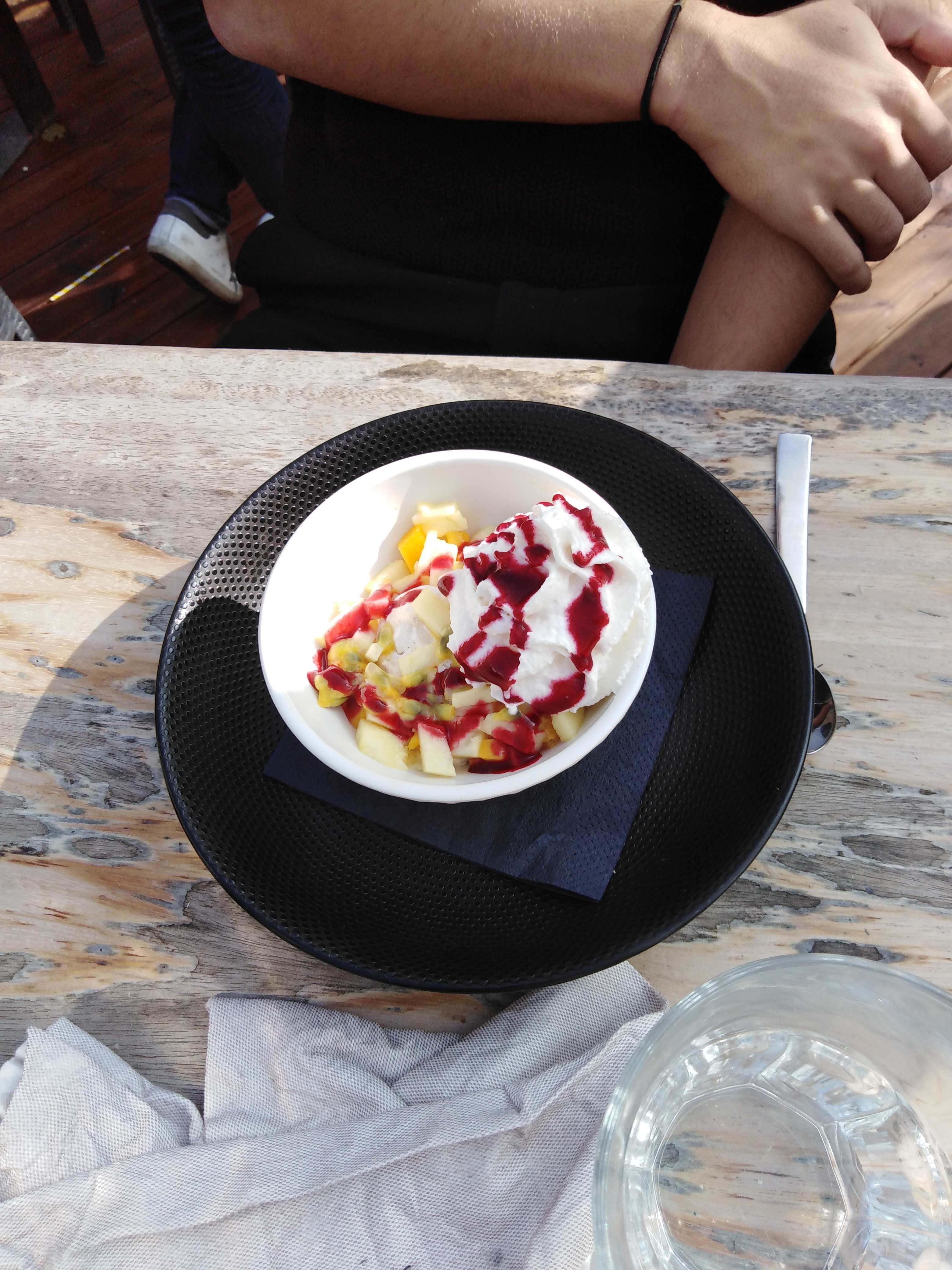 Très belle terrasse. Bon accueil. Salade italienne très bonne mais pour 19€ un petit peu plus de jambon et de mozarella auraient été les bienvenus. Très bonnes moules, pas des toutes petites.
