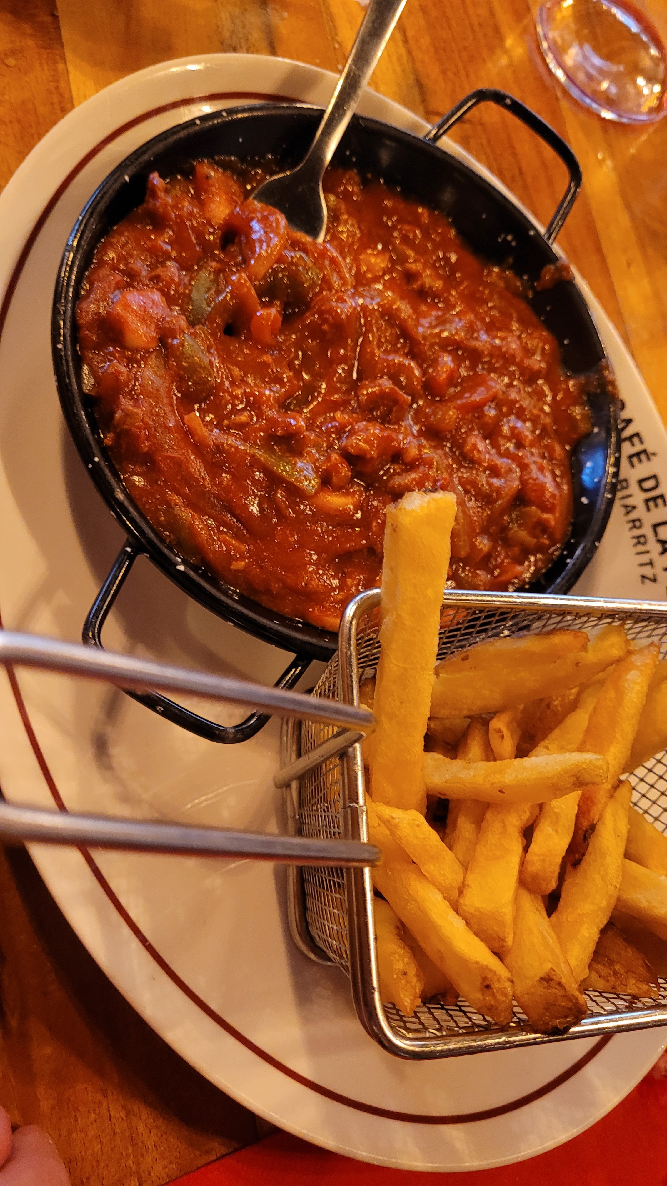 Les serveurs sont très professionnels et d’une super gentillesse, mon conjoint a pris un Burger basque qui était très bon, il c’est régaler. moi cependant j’ai pris des moules marinières.. pas top.. mal laver, les coquilles toutes casser donc quand je mangeais ça croustillais.. pas très agréable et dangereux. C’est vraiment dommage en tout cas les frites maison étaient très bonne