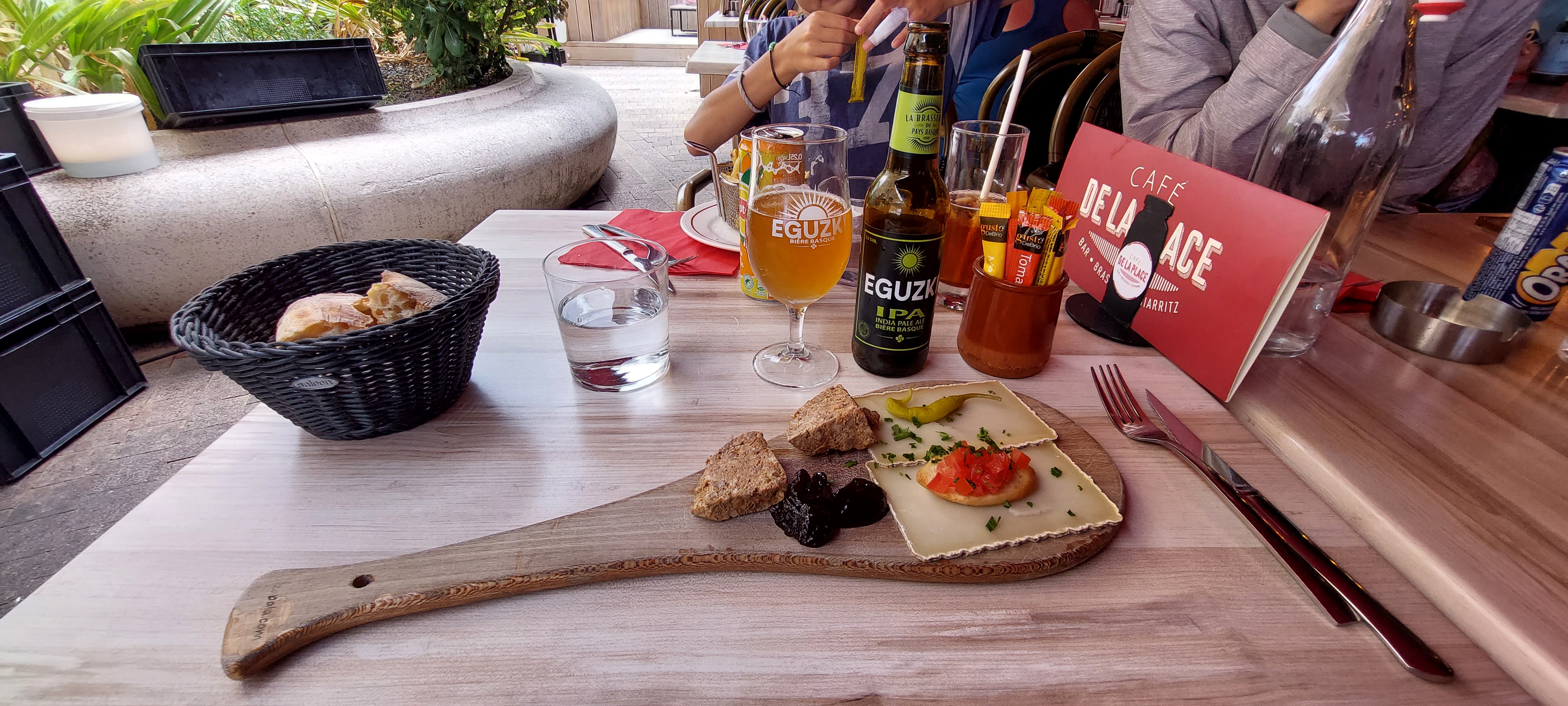 Mon expérience au Café de la Place à Biarritz fut extrêmement décevante. La quantité des plats était plus que légère, et le vin servi était de qualité douteuse, enfermé dans une bouteille à vis. De plus, lors du service, la serveuse a simplement posé la bouteille sur la table sans nous proposer de goûter le produit, démontrant un manque de professionnalisme. Le temps d'attente était interminable, et même des demandes simples comme baisser un parasol ont été ignorées. Restaurant à éviter.