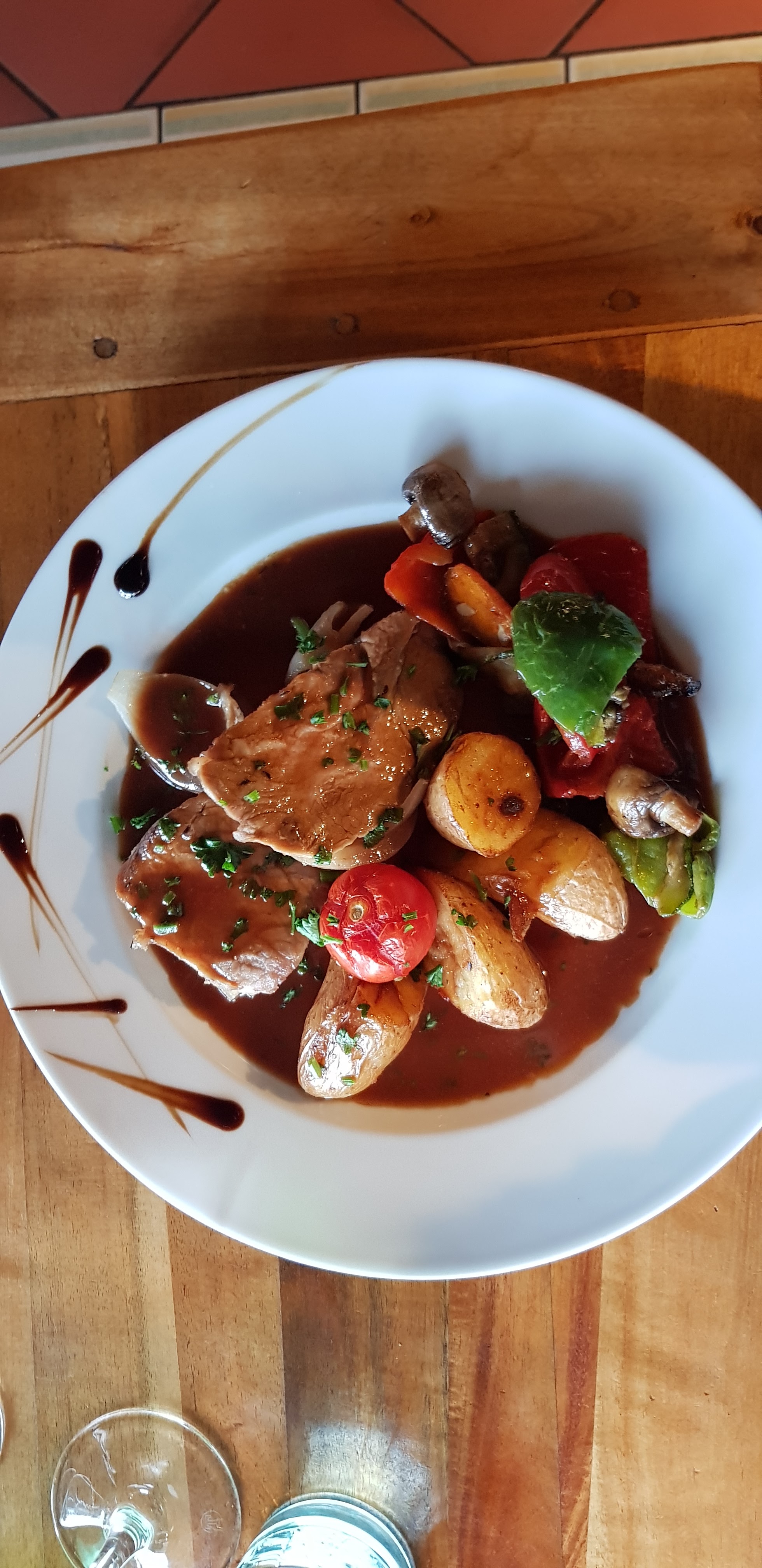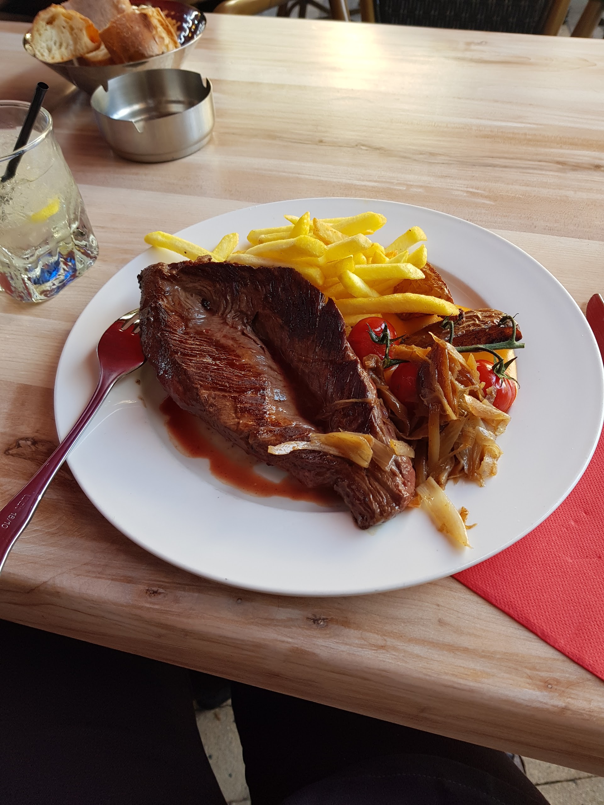 Nous nous sommes arrêté, dans ce restaurant à la façade plutot sympathique, nous avons commandé un apéritif à peine nos verres servis que nos plats arrivés sur la table . Aucun intérêt pour la clientèle, c était l usine, rendement au maximum. Nous n avons eut aucun plaisir à manger dans ce restaurant .