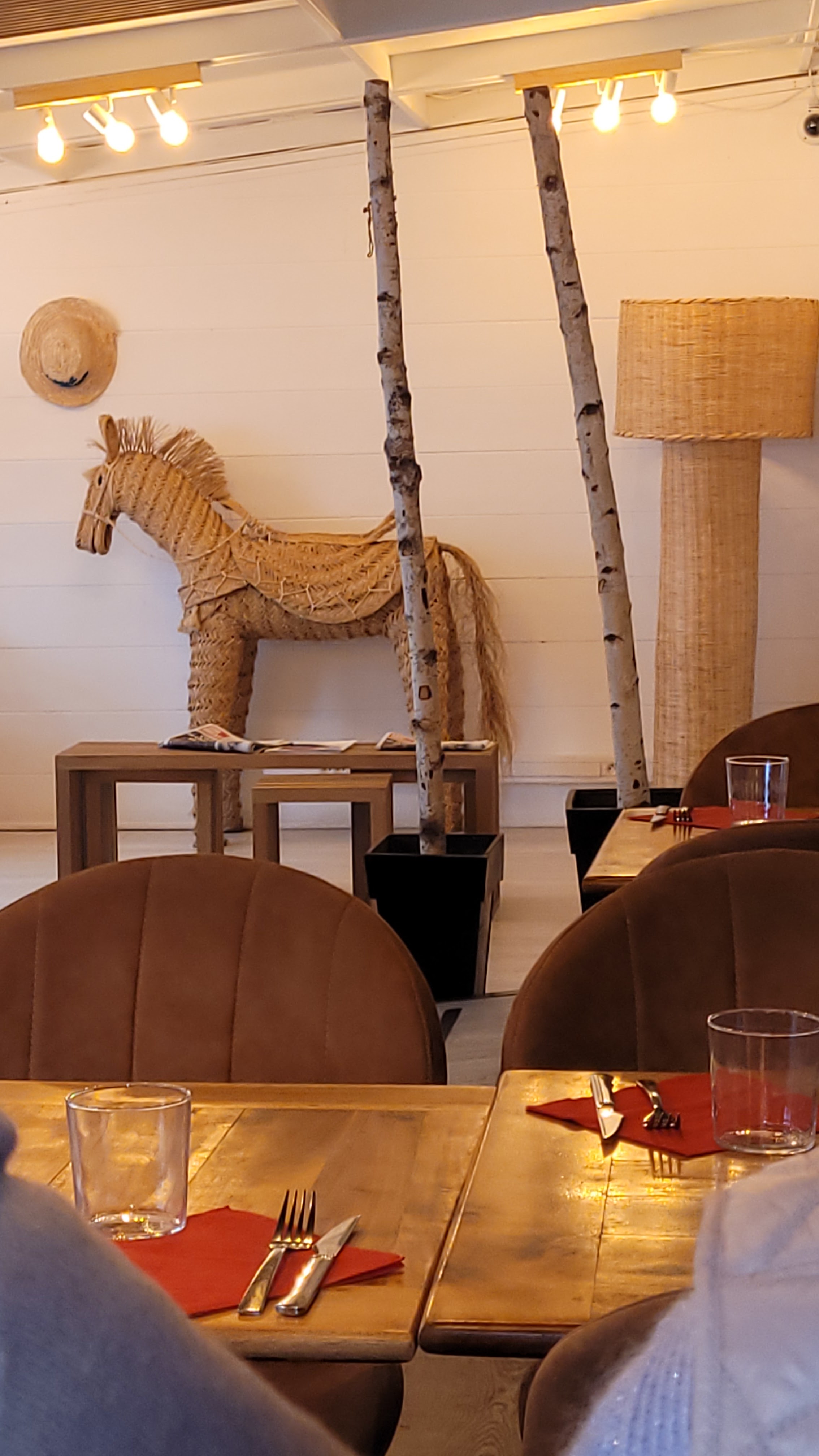 Nous sommes arrivés vers 13h un mardi pluvieux. La carte extérieure proposait plusieurs poissons et c'est ce que nous souhaitions manger. Accueil très cordial. Nous commandons de la truite, le serveur nous dit qu'il n'y en a plus mais qu'il nous propose du melon/serrano à la place. Sauf que nous ne mangeons pas de viande. Donc que pouvions-nous manger? Des pâtes au pesto ou au légumes. S'il n'y avait pas eu autant de pluie, nous aurions chercher un autre restaurant. Nous avons décidé de rester. Nous avons donc finalement mangé des linguines au pesto très grasses et des linguines aux légumes (carottes de 2 couleurs et brocolis). Une expérience culinaire inoubliable dans le mauvais sens. Les serveur(se)s étaient désolés et ont dit qu'ils feraient remonter l'information de notre déception...