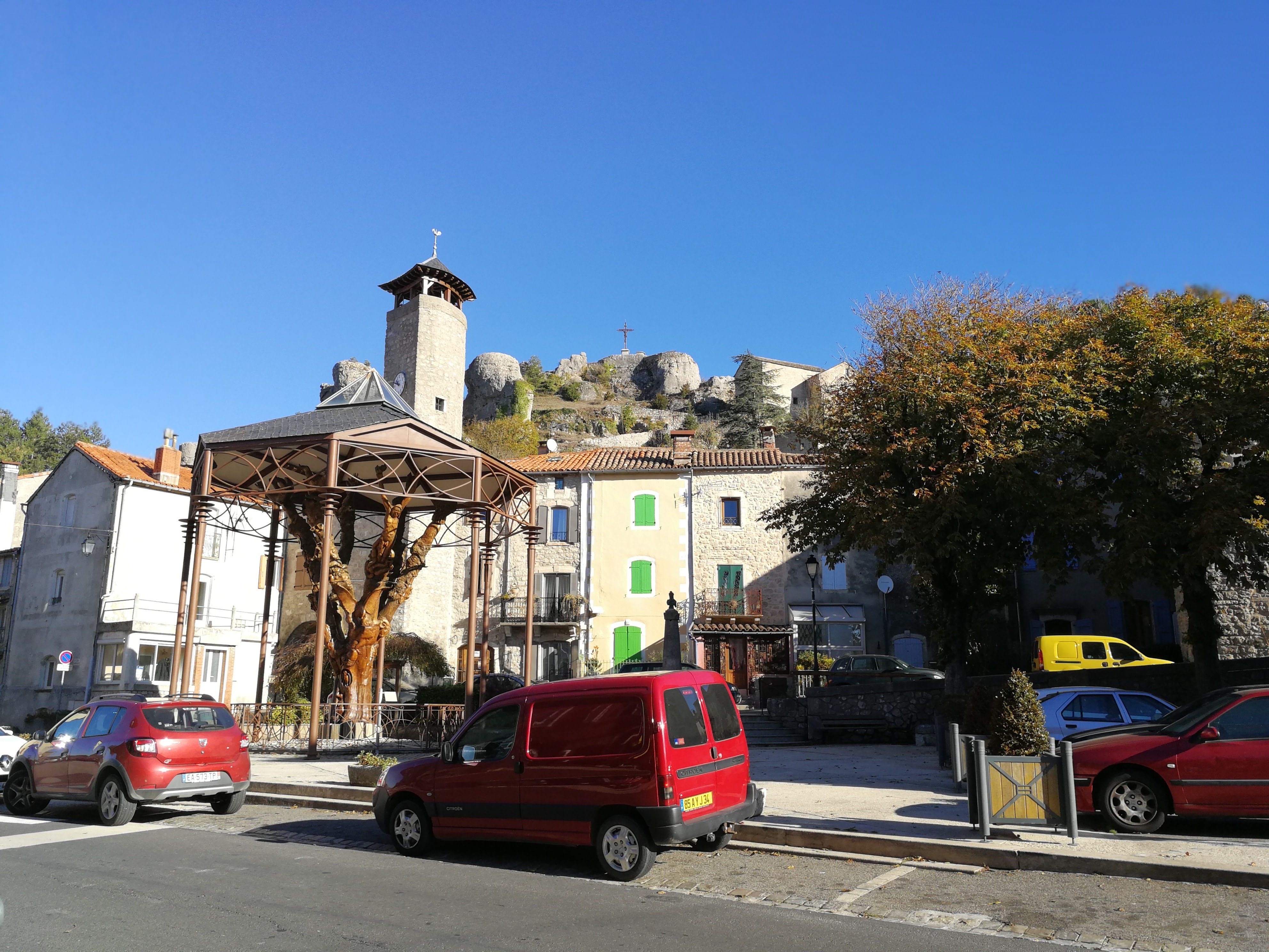 Ici, il faut tourner vos chaises vers le café! Le spectacle est permanent, les locaux se retrouvent, rient, blaguent et se chârient! Après le très bon diabolo pêche, retournez vous face à l arbre sculpté et surtout montez à travers ses ruelles pittoresques jusqu au château et à sa tour qui vous offrira un point de vue sur toute la vallée.