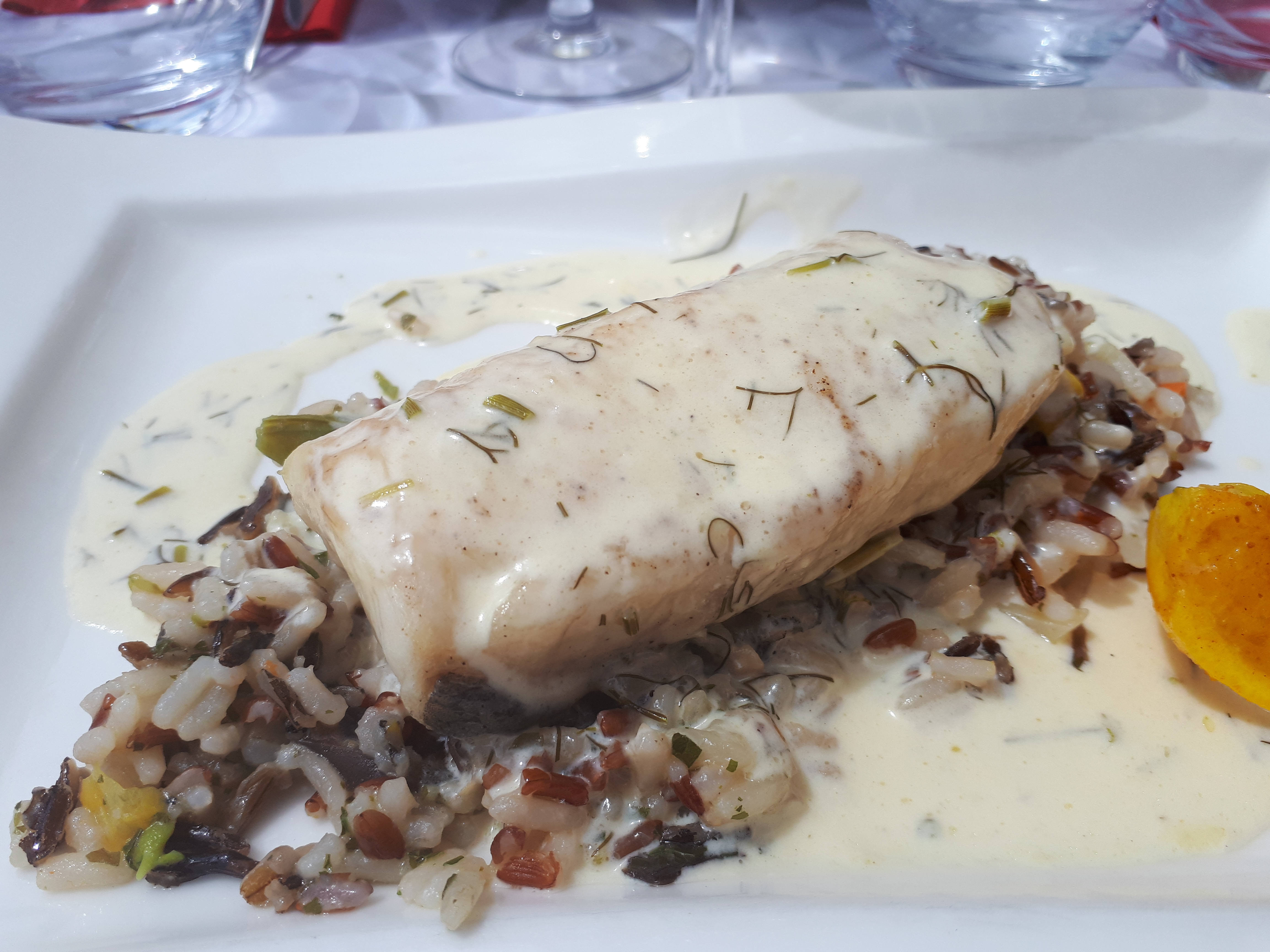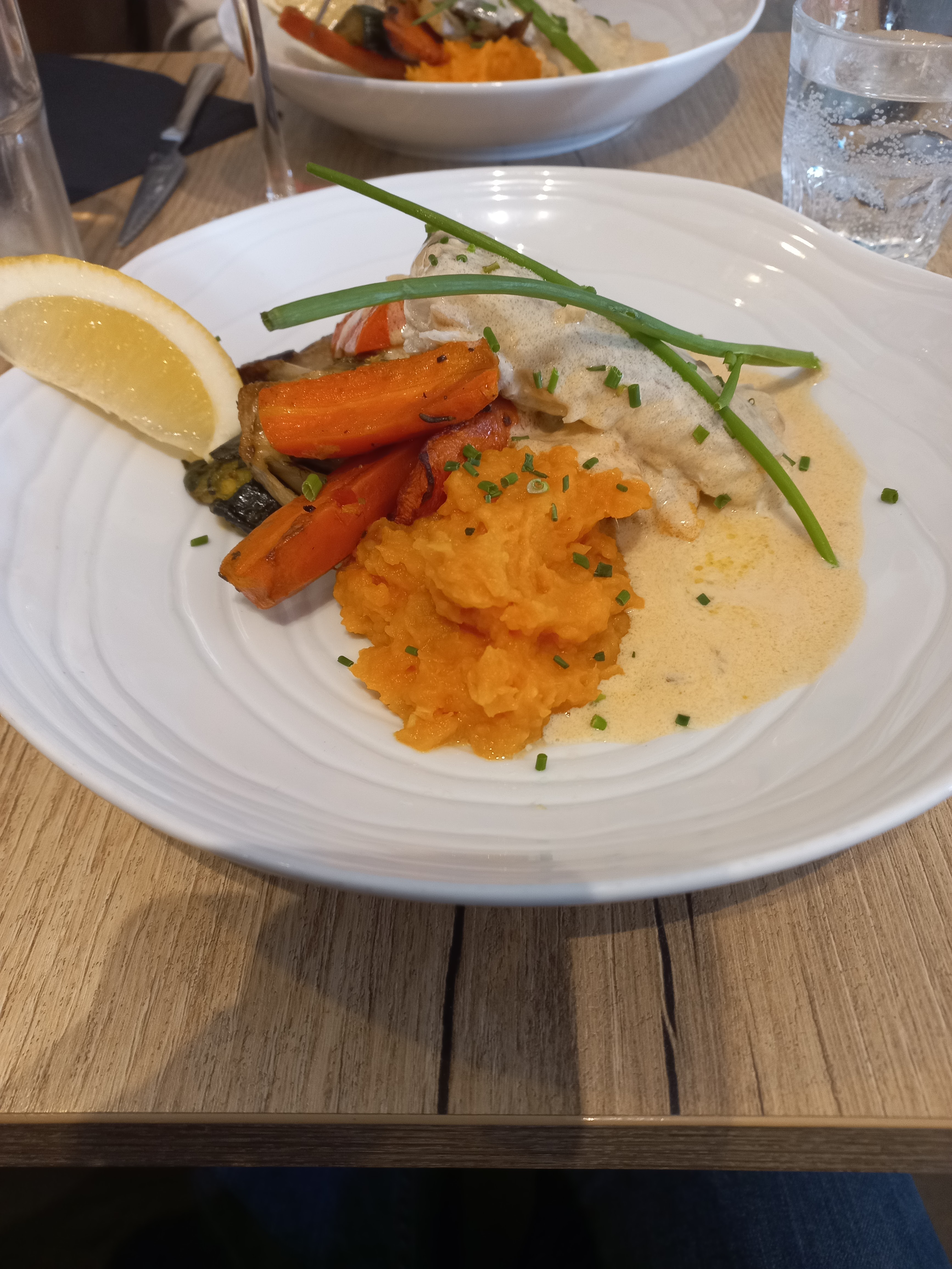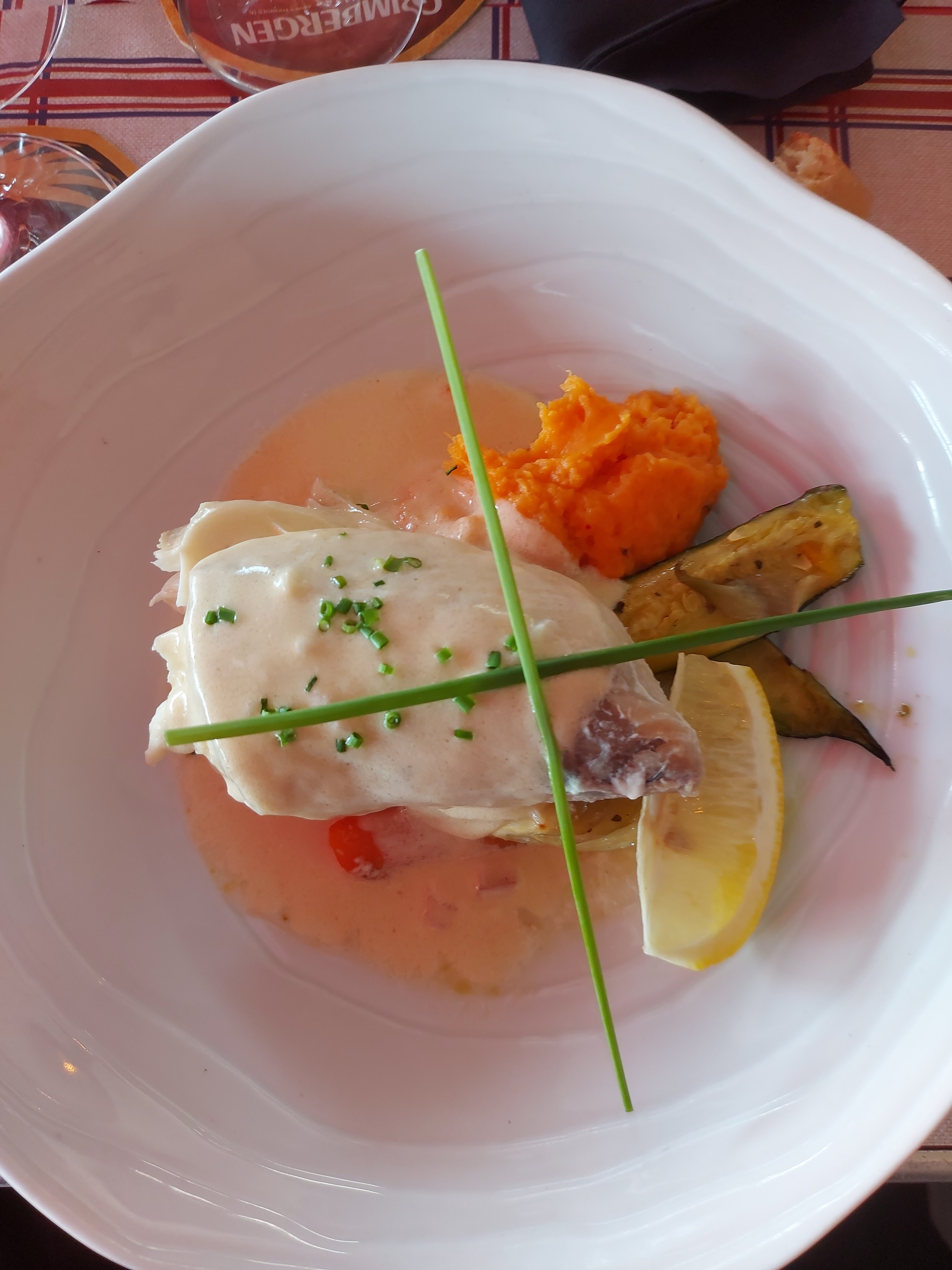 Déjeuner de ce midi impeccable !! Plat du jour Lieu noir sauce vin blanc et légumes cuits al dente ! Rapidité et efficacité..gentillesse..sourires sous les masques..des personnes compétentes et un cadre parfait! Le patron est calme et très pro ! Et Axel qui s'est occupé de notre table a été tout simplement adorable ! Merci encore!!