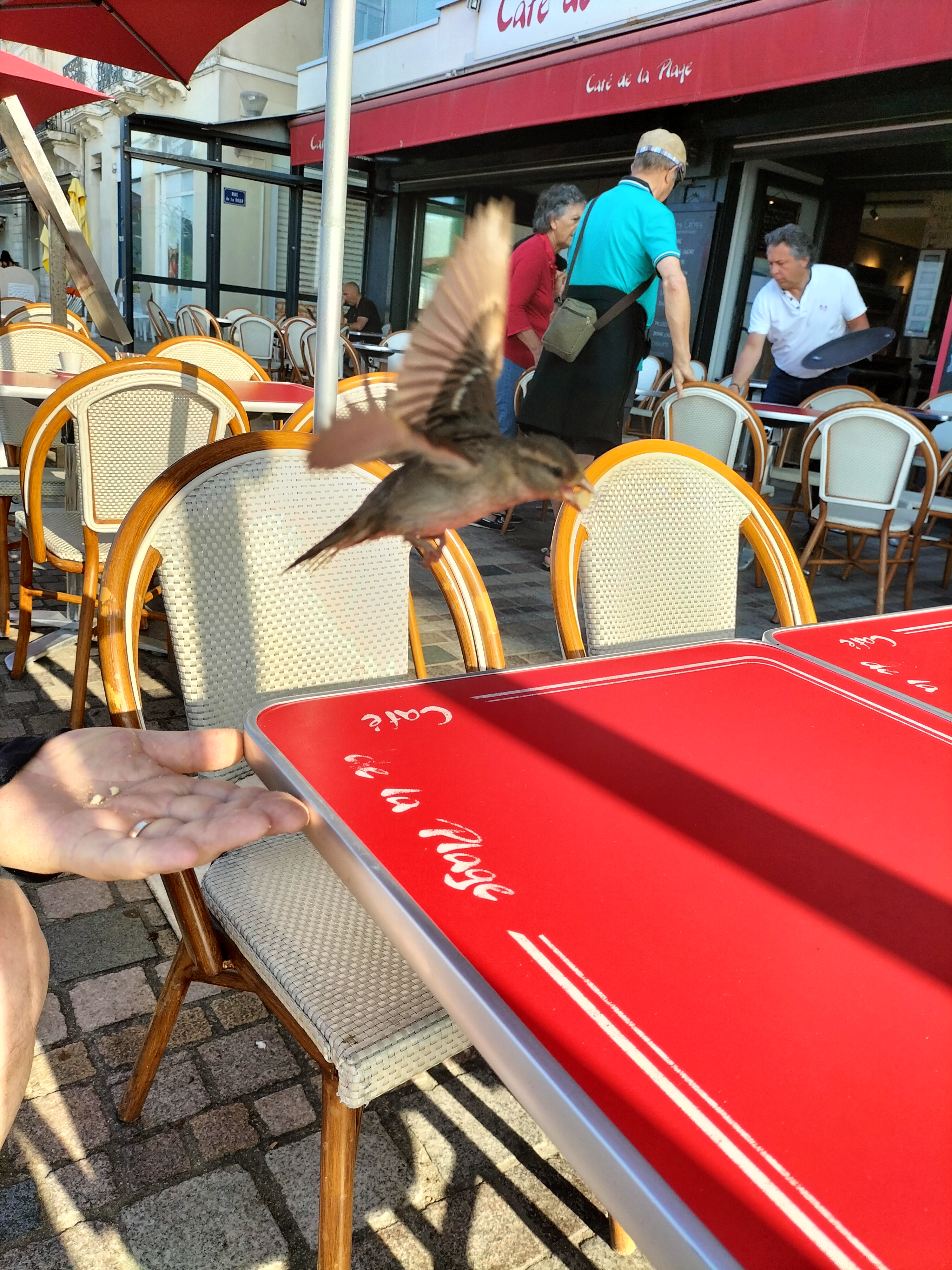 Notre QG le matin, pour se réveiller tranquillement avant d'aller à la plage. Le café est bon, les croissants sortent du four. Equipe sympathique. Rien à redire. J'ai par ailleurs pu y télétravailler un peu, vue sur mer. Un plaisir !