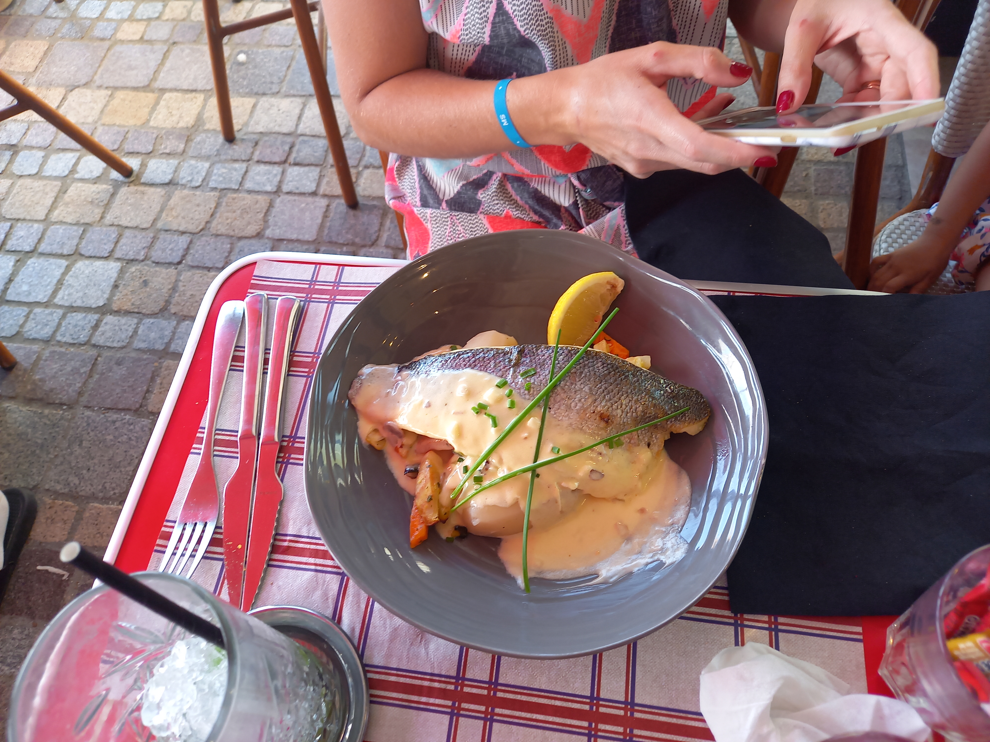 Suis venue déjeuner avec ma soeur un lundi midi sous un beau soleil, la terrasse était plutôt chargée. Nous voulions manger rapidement et le serveur a tout mis en œuvre afin qu’on soit servit rapidement. Très sympathique !