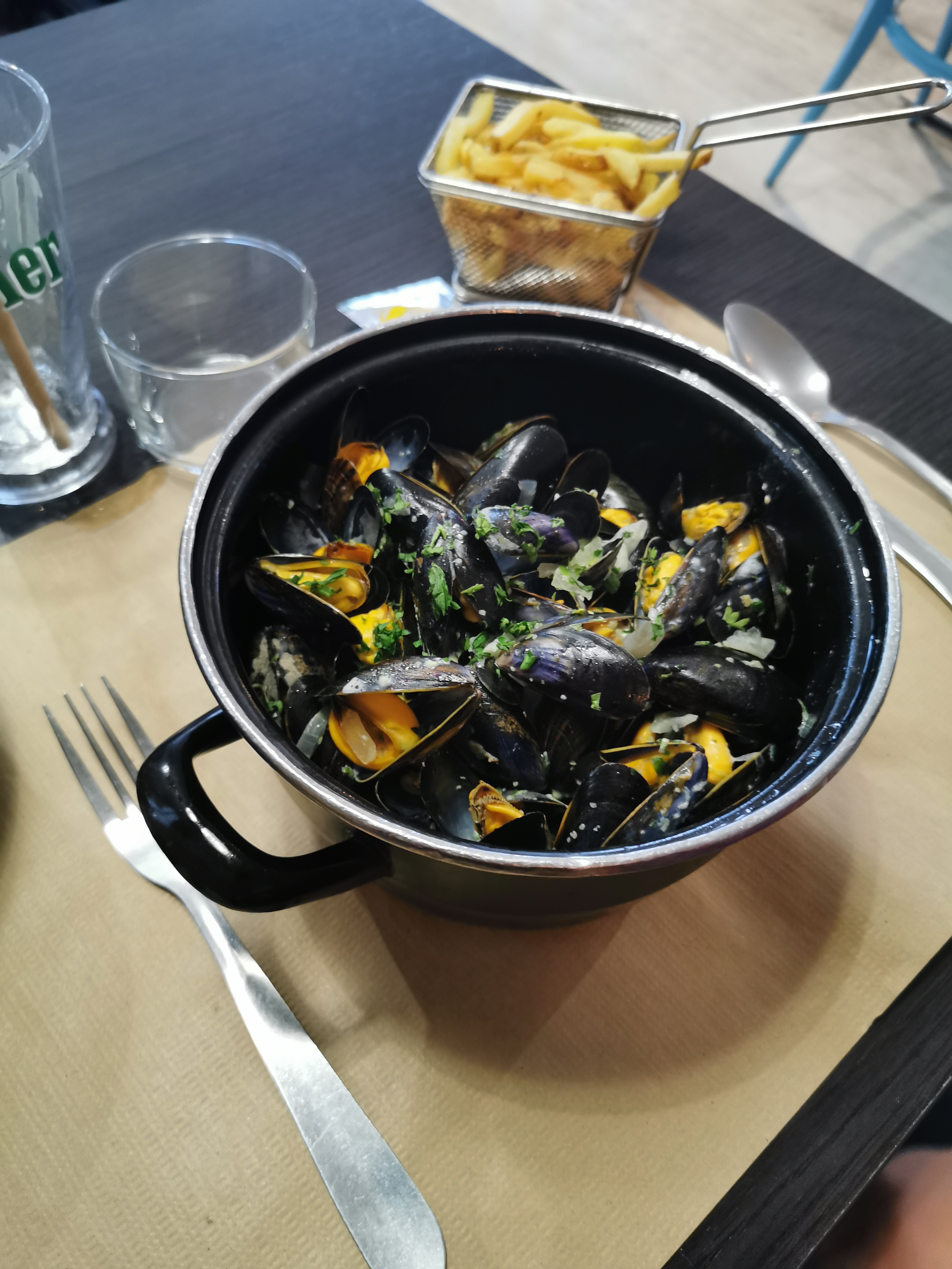 Accueil très sympa et terrasse conviviale, sous les platanes 🌿 Les moules à la crème sont fameuses, bien cuites et parfaitement assaisonnées. Les frites sont faites maison 😚 Un régal !
