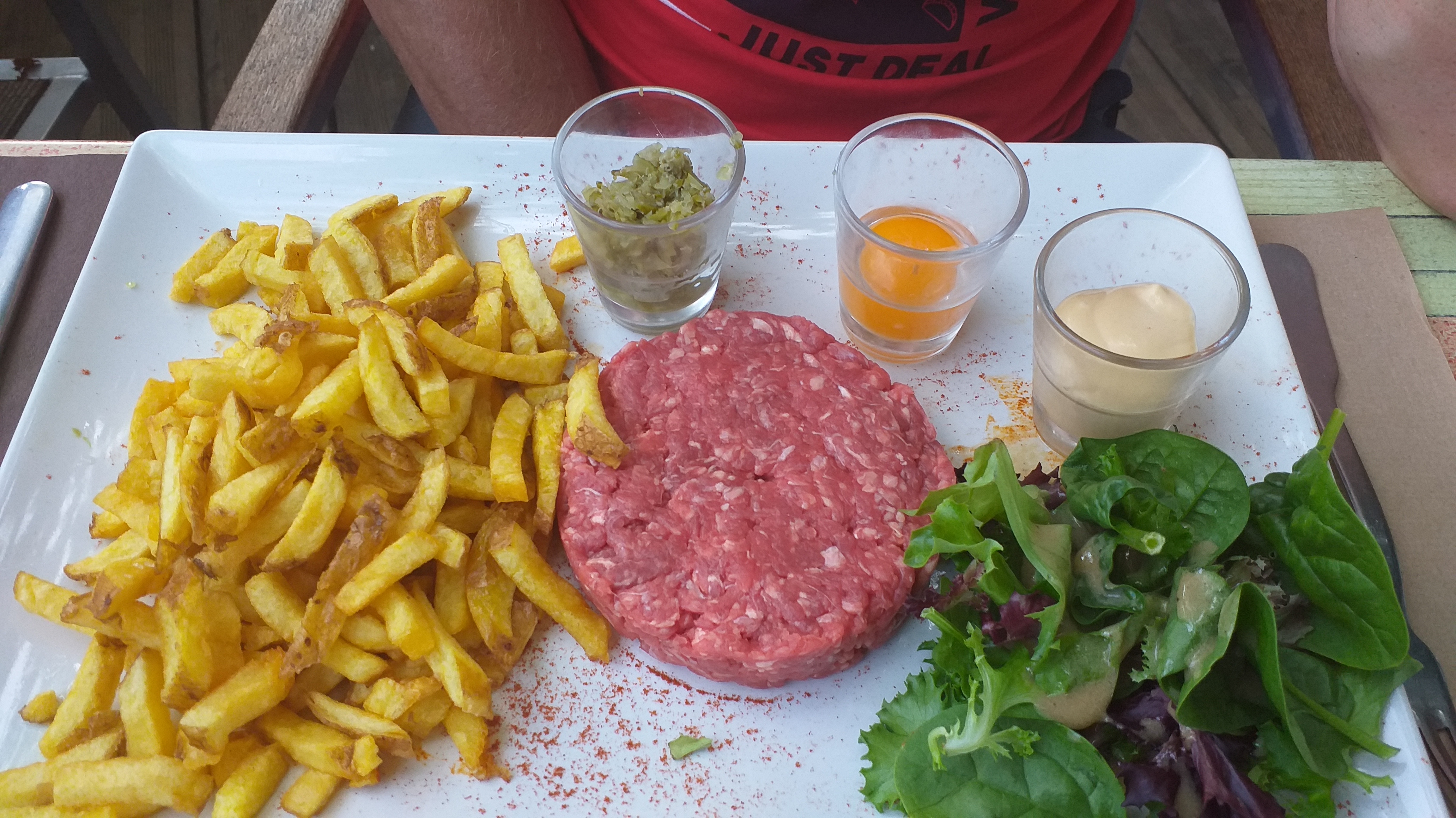 Accueil sympathique, carte simple et efficace. Nous avons bien mangé, c' est beaucoup fait maison, les nuggets des enfants, les moules, les burgers... L'accueil est sympathique et la terrasse sous les arbres est très agréable !! Les enfants sont bien accueilli.