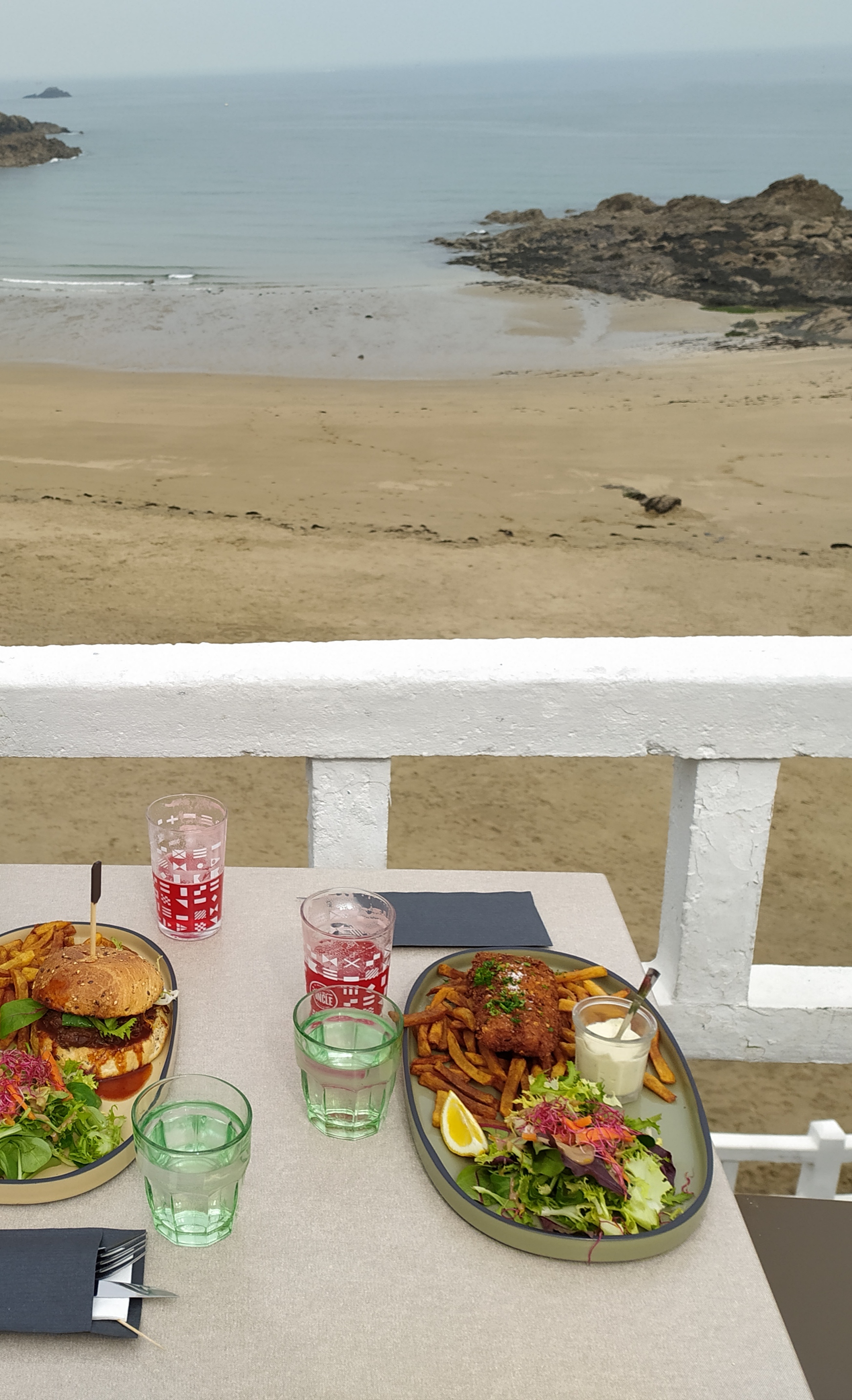 Accueil sympa, belle vue sur la mer. un hamburger original et savoureux.