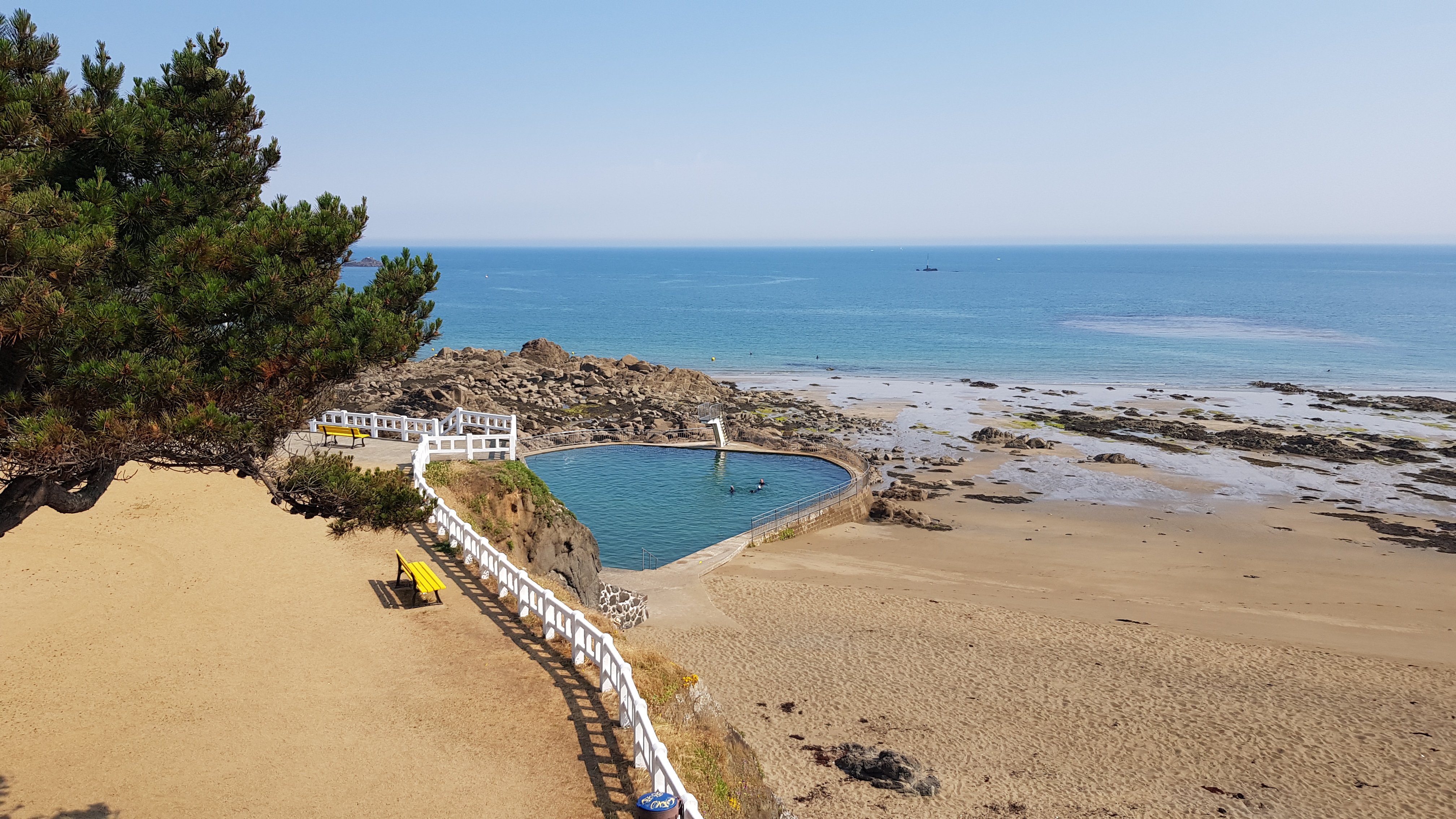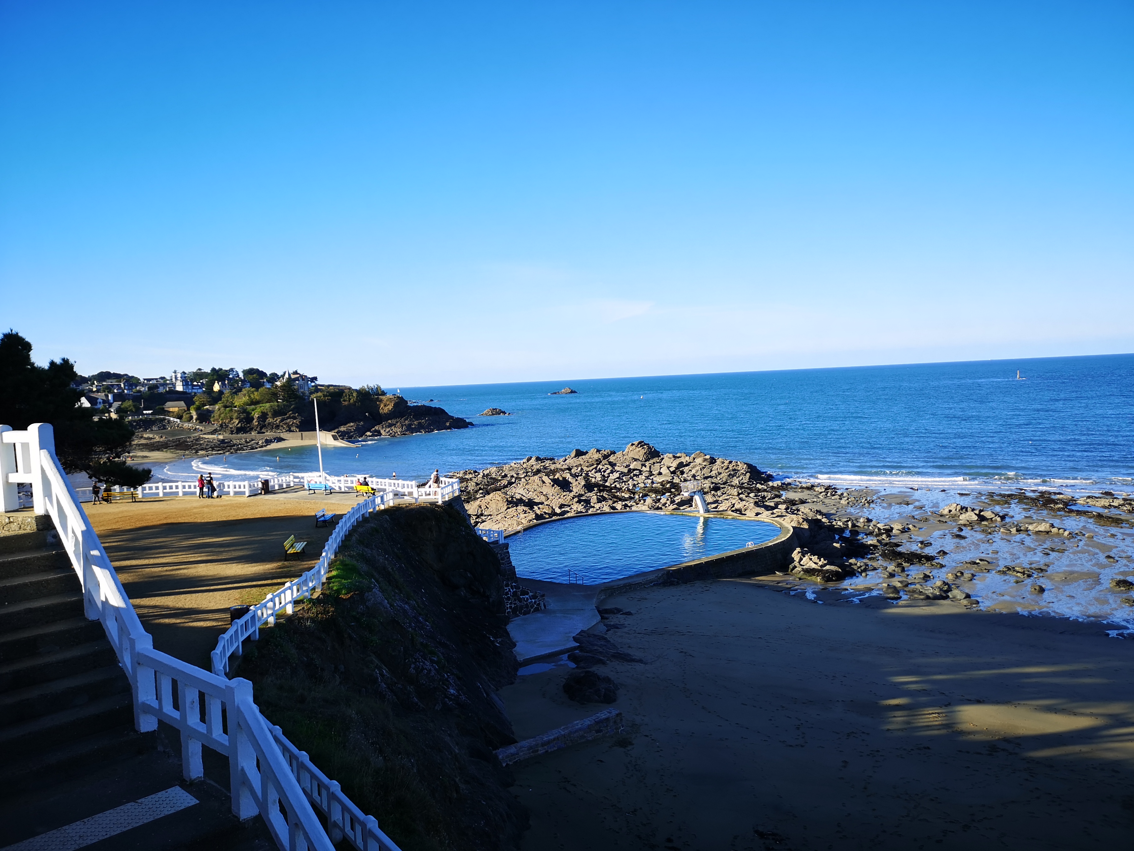 Très calme.superbe vue sur la mer.petit café matinal à ne pas loupé. A côté d un sentier côtier à faire absolument.facile pour les petits et plutôt sécurisé.