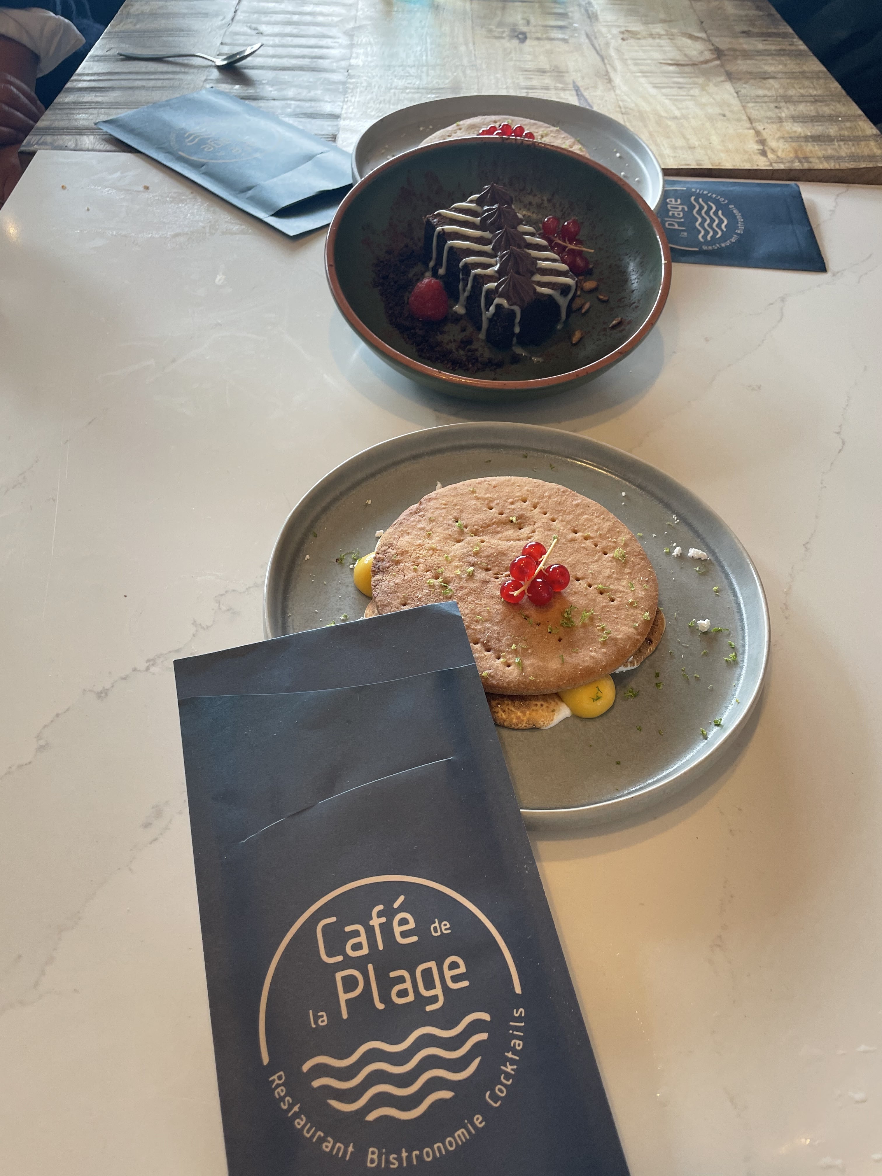 Nous avons déjeuné au Café de la plage, plats et desserts délicieux, le personnel accueillant et souriant malgré l'affluence, Alyssa est de bons conseils dans le choix des plats, nous avons passé un excellent moment face à l'océan.