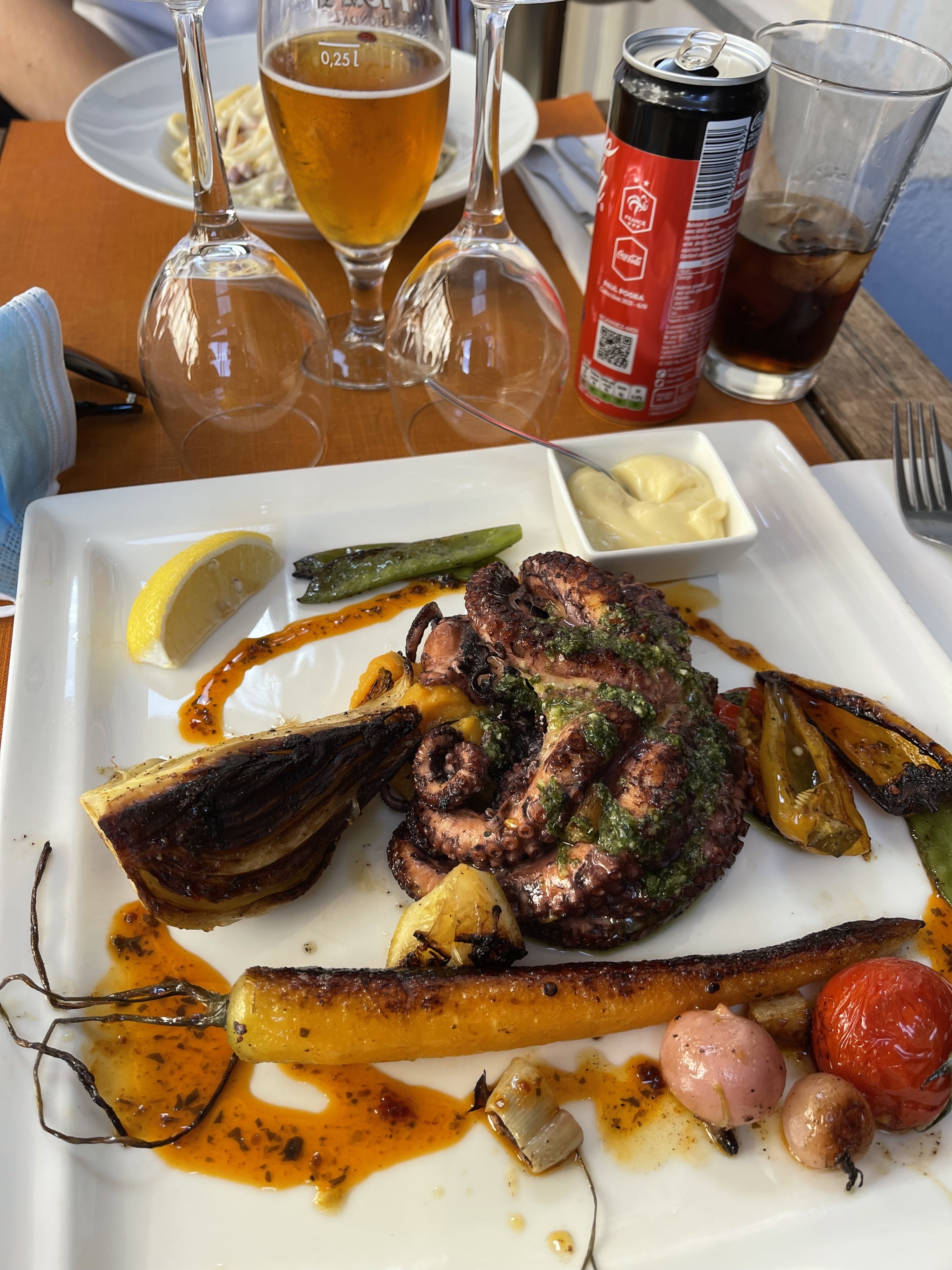 Attrape touriste ! Accueil très moyen Poulpe grillé….très gras Lasagne avec peu de viande et particulièrement poivré, souvent un signe pour masquer une alimentation pas très fraîche … Ambiance pas top Je déconseille vivement