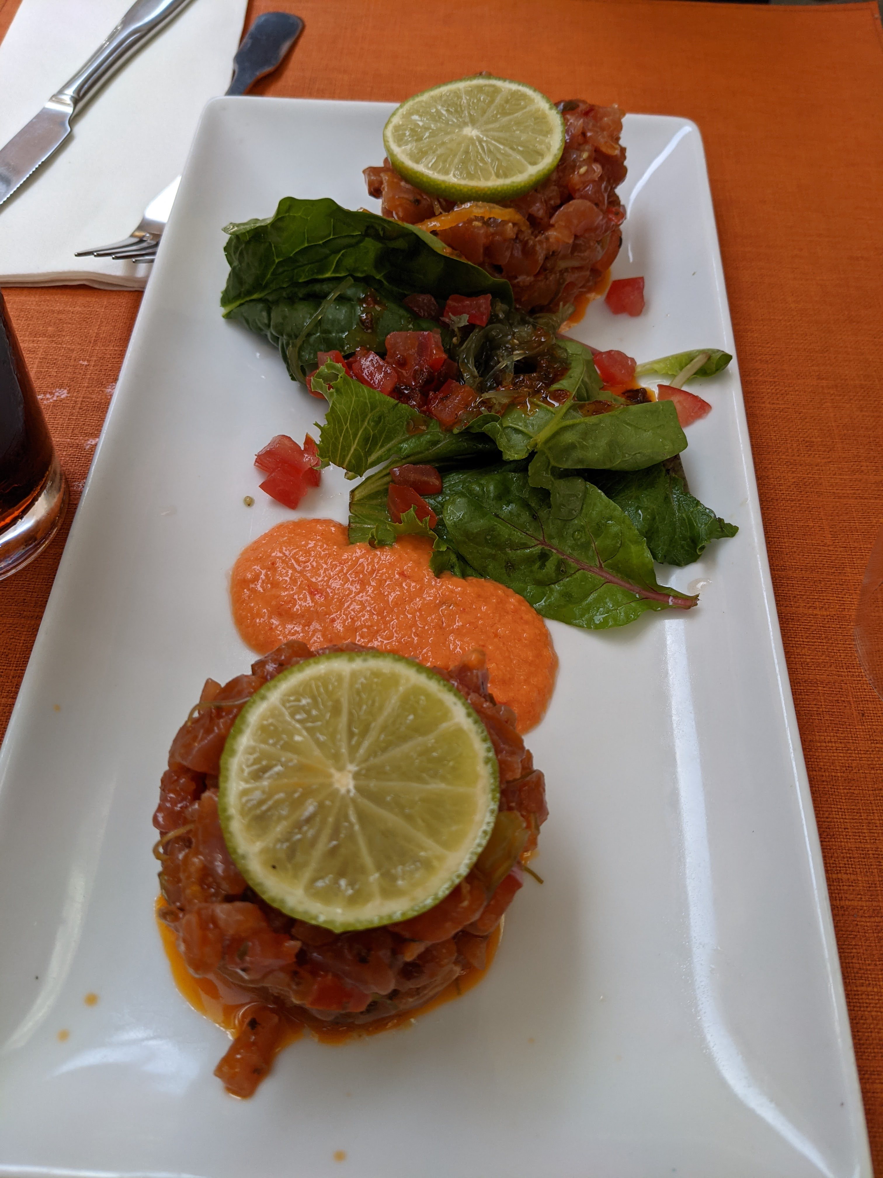 Restaurant beaucoup trop mal noté !! Excellent repas, le tartare de thon, le poulpe et la parillada de poissons étaient succulents !