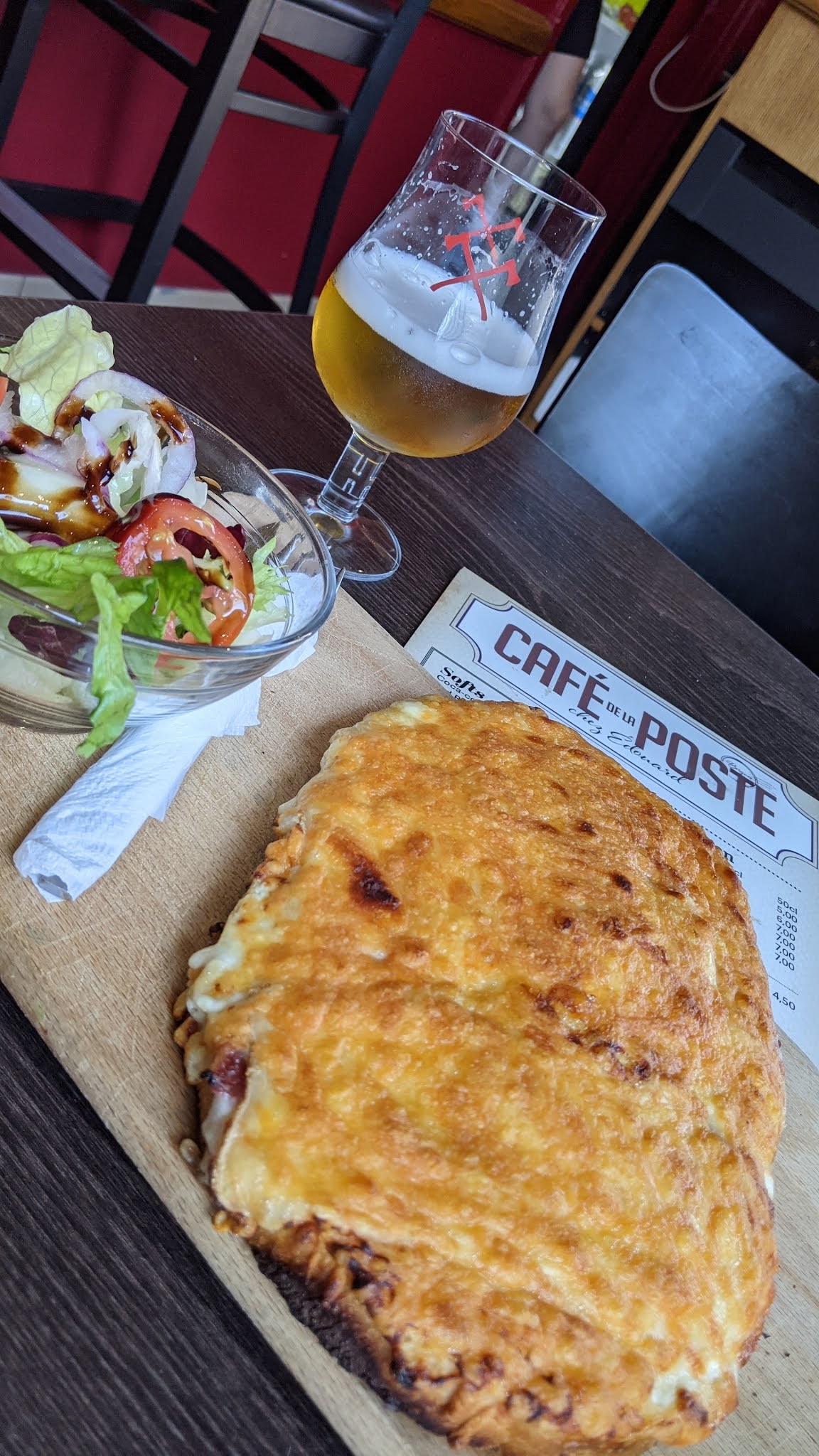 S'il y a un seul café à recommander à Bergues c'est le Café de La Poste emplacement idéal avec vue sur le magnifique Beffroi une terrasse idéalement exposé un personnel souriant et très agréable et de bons produits... Ils ne sont pas radins avec le coulis de chocolat fondu pour les glaces par exemple... Bref nous y reviendrons Date de notre visite Dimanche 24/02/2019