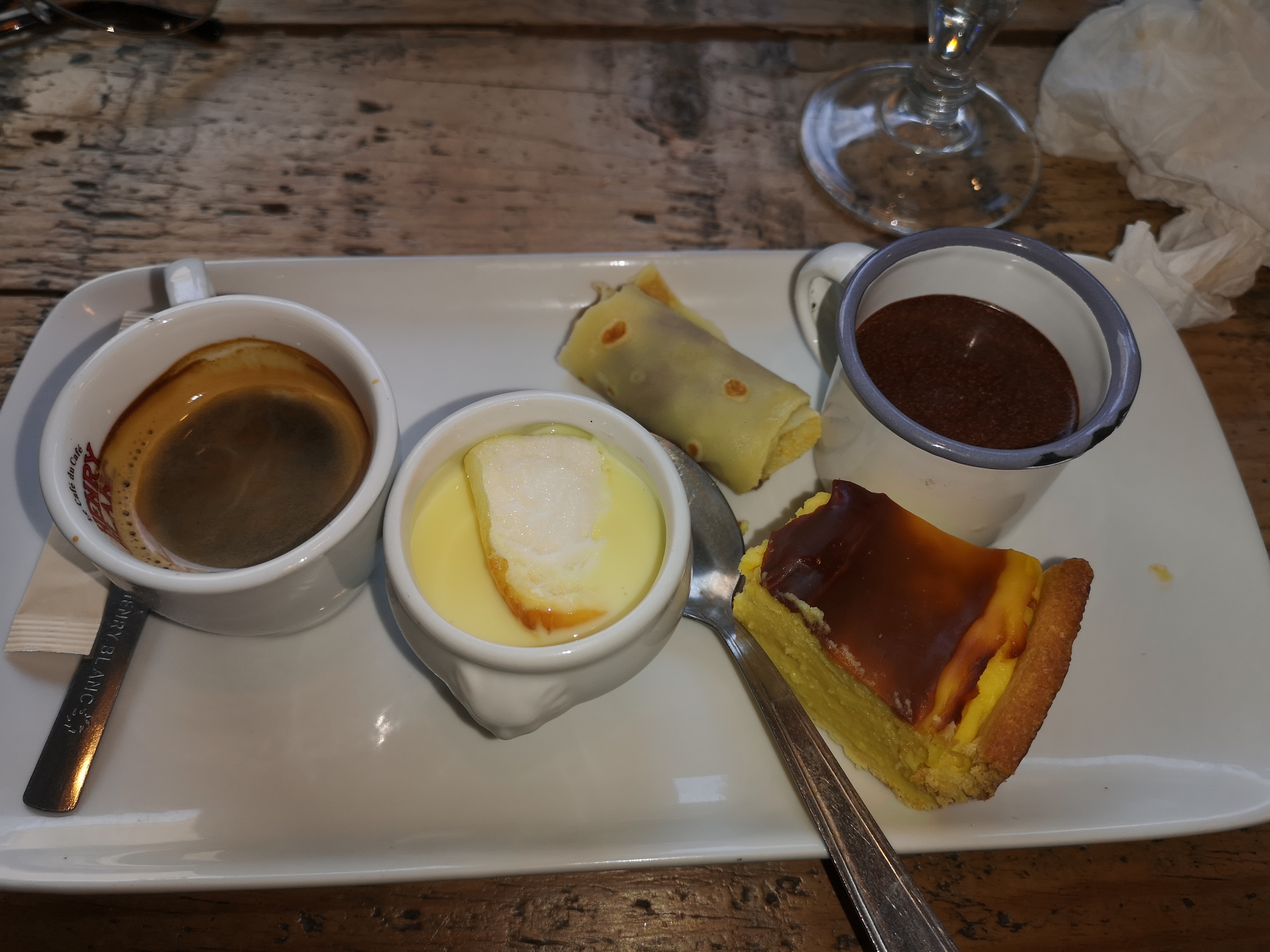 Accueil à géométrie variable , des fois bonjour des fois non , bonne planche mixte , par contre les profiteroles c est du nimp , le chocolat c'est du topping (beurk) et pas de glace dans les choux mais une sorte de crème pas bonne .Clientèle de pied de vigne bien bruyante.