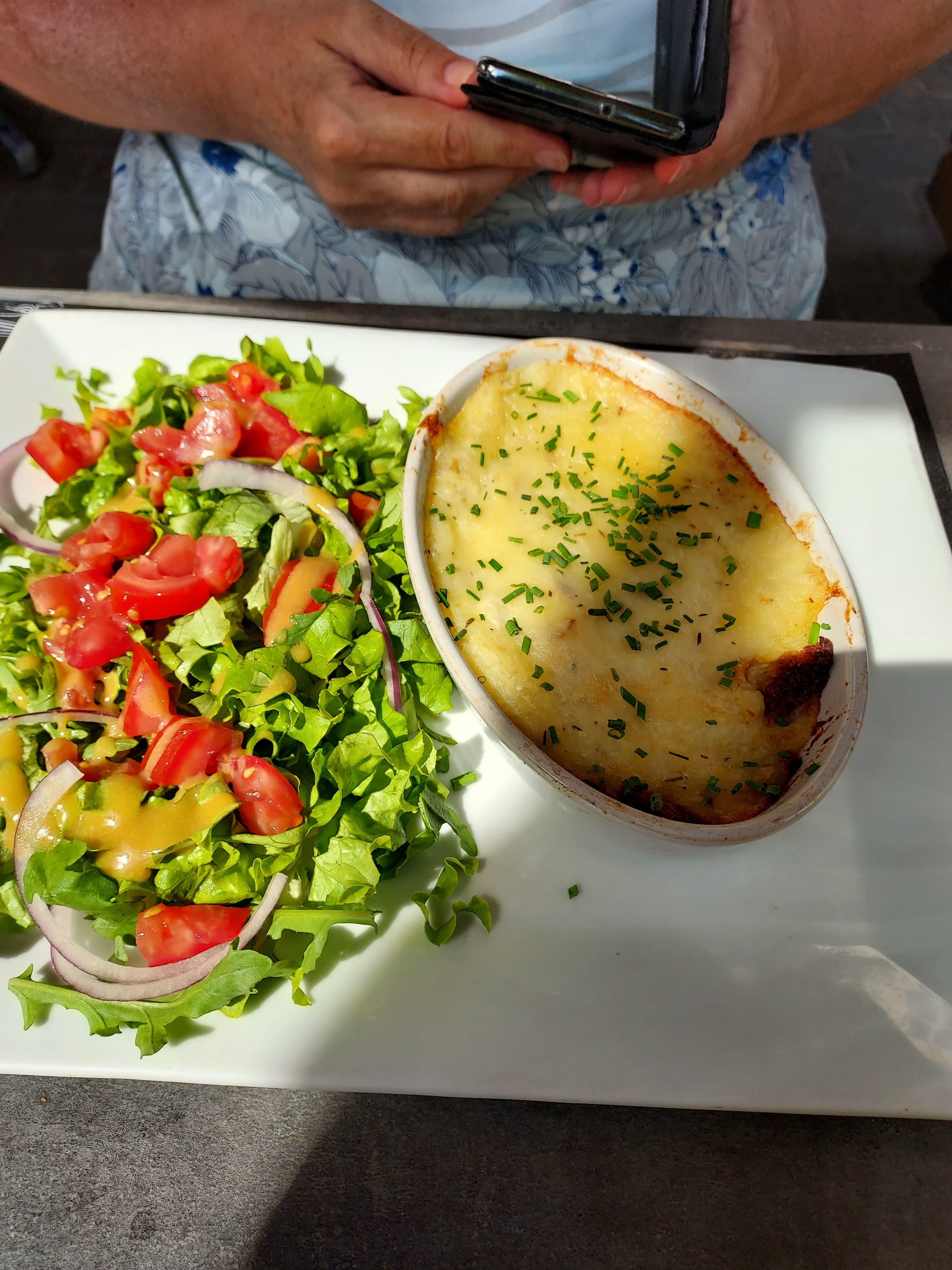 Belle terrasse présentation des plats corrects niveau prix ce n'est pas donner non plus mais le goût y étais et la petite place très charmante