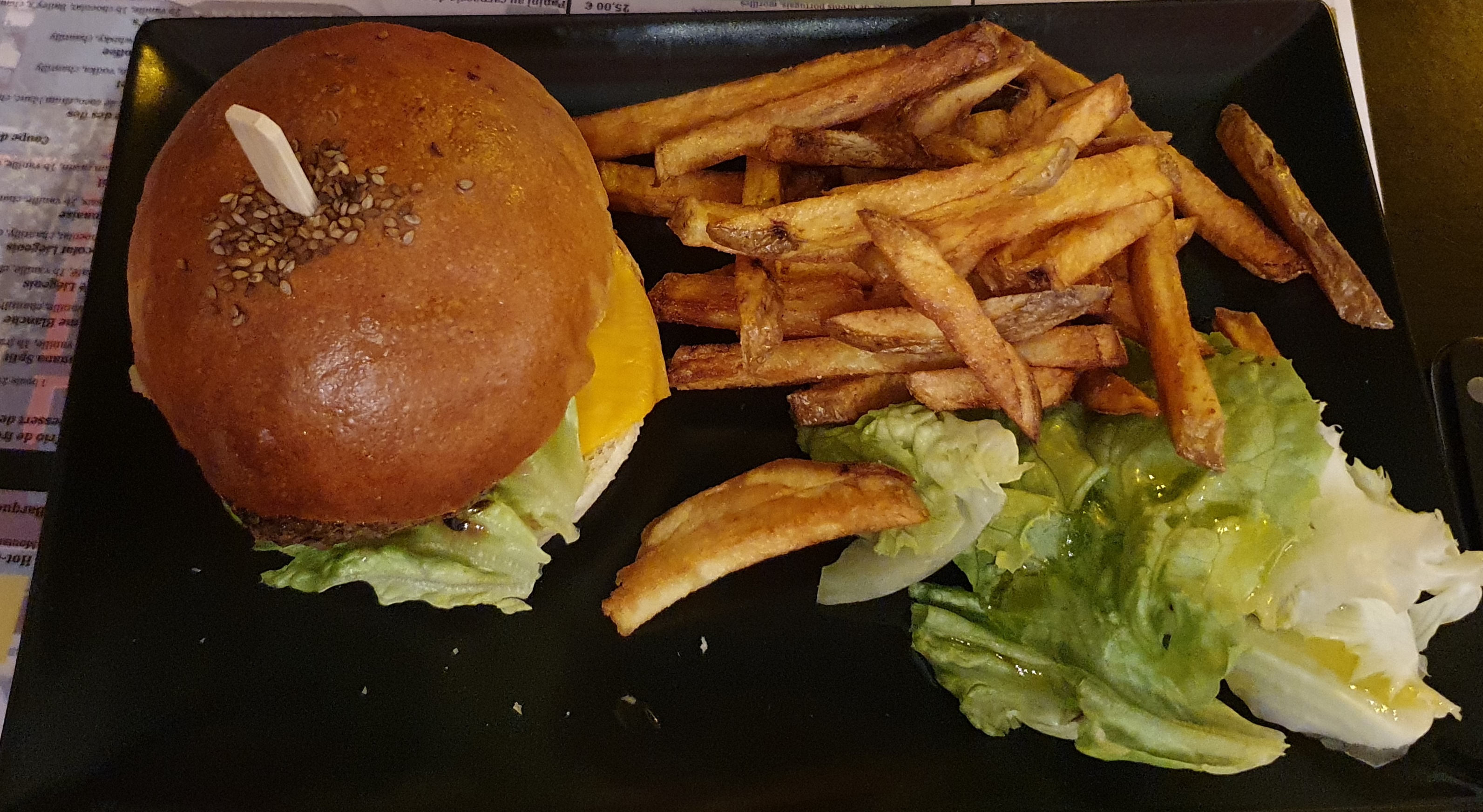 Un burger copieux et fait maison qui était excellent. Des frites aussi faites maison avec une sauce délicieuse au comté. Une jeune serveuse très sympathique, et une terrasse agréable pour ces soirées d'été. Que demander de plus ? Merci beaucoup pour ce moment et bonne continuation