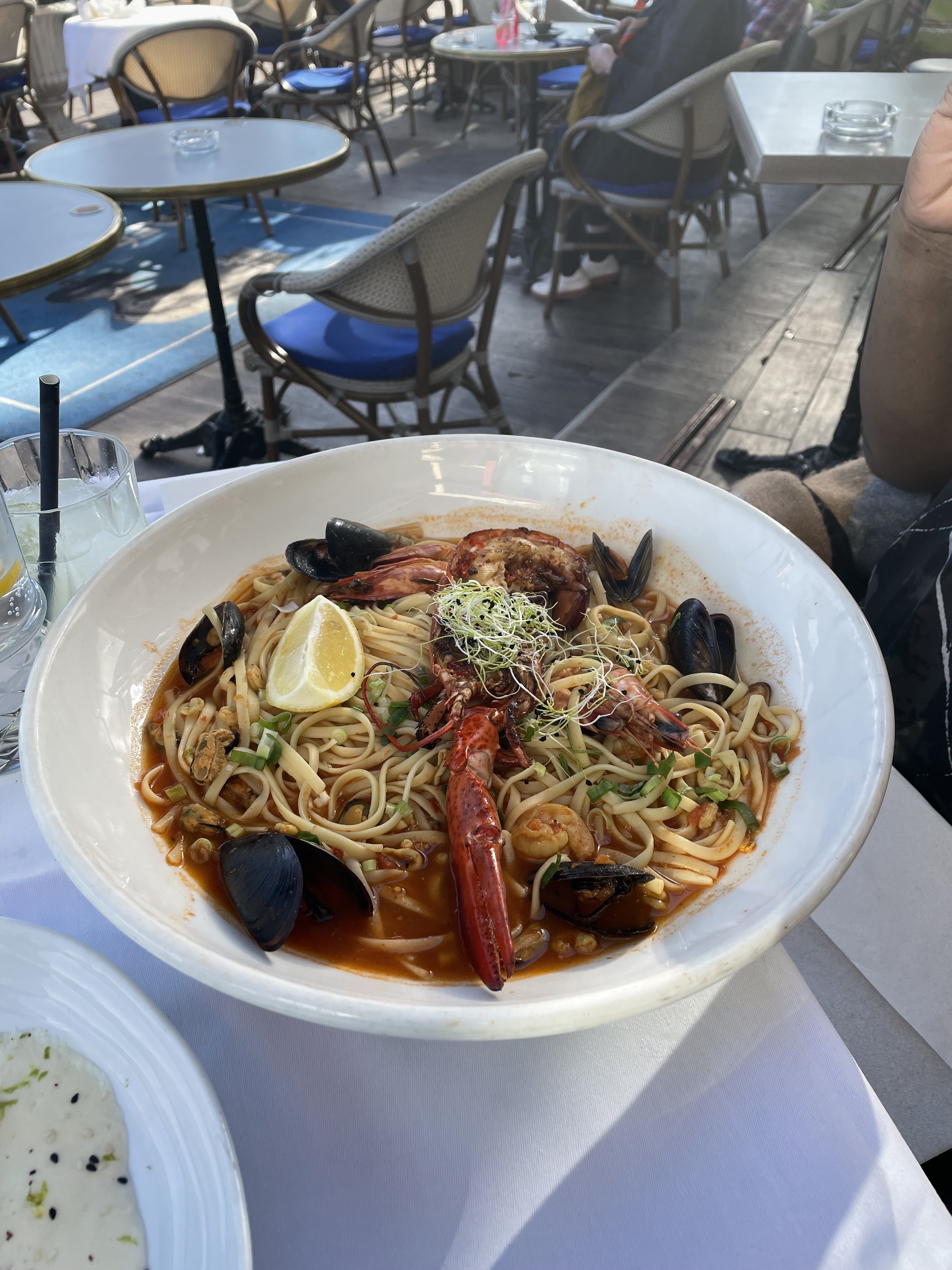 Situé juste face à la mer, bon emplacement. Les serveurs étaient au top. Par contre la nourriture bof. Et surtout la quantité par rapport aux prix qui sont assez élevés.. Il n’y avait pas grand chose dans l’assiette dommage..