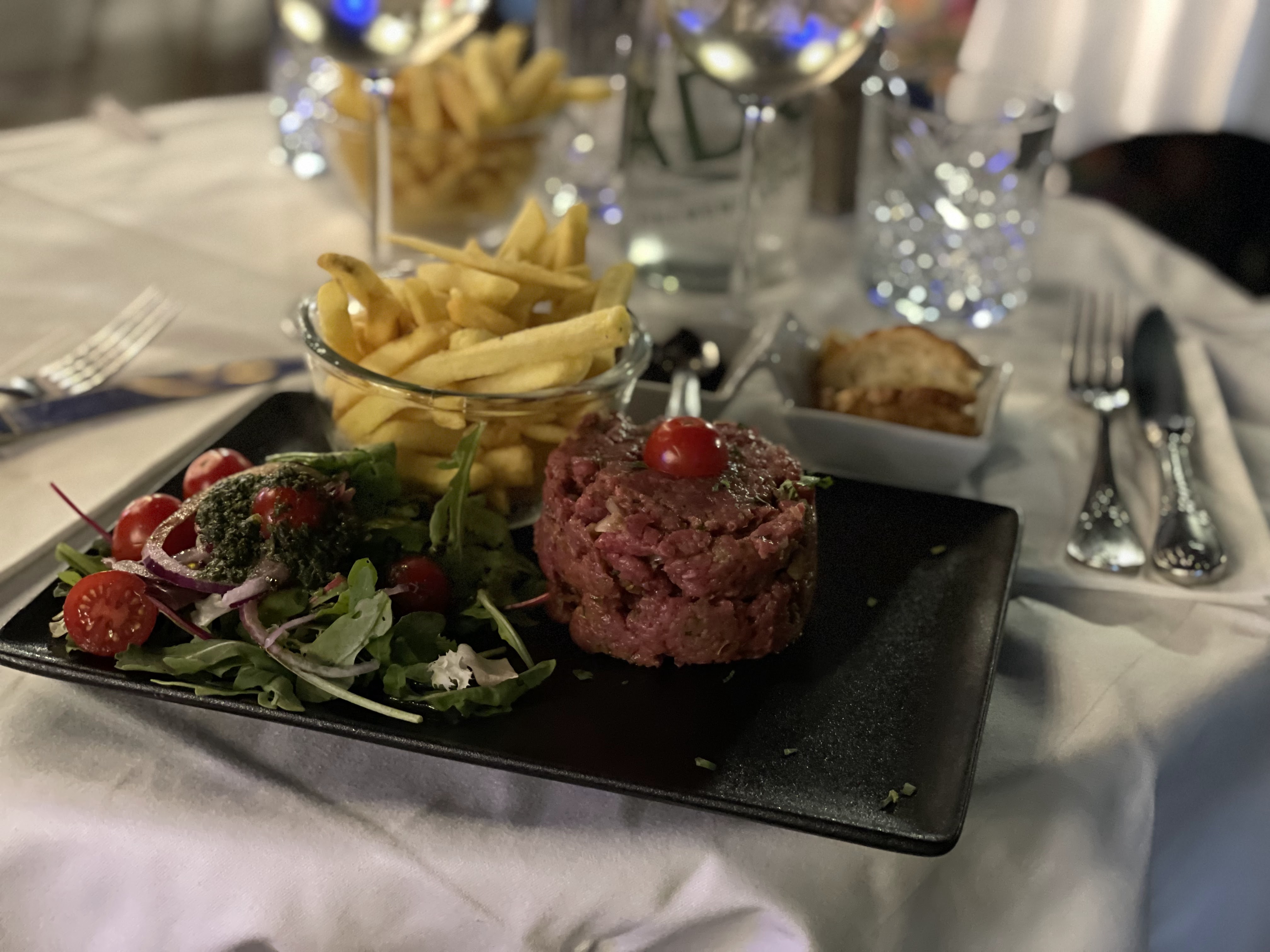 ✅Un super restaurant. Nous avons été surpris qu'il se passe si peu de choses. Il y a aussi quelques mauvaises critiques ici. Nous avons pris le tartare de bœuf et les moules. Et un rosé. Tout était très bon et les prix étaient corrects. Nous sommes heureux de vous attribuer ici une note de 5 étoiles ⭐️⭐️⭐️⭐️⭐️. Le service était très sympathique, même si la glace pour le vin avait été oubliée au départ.