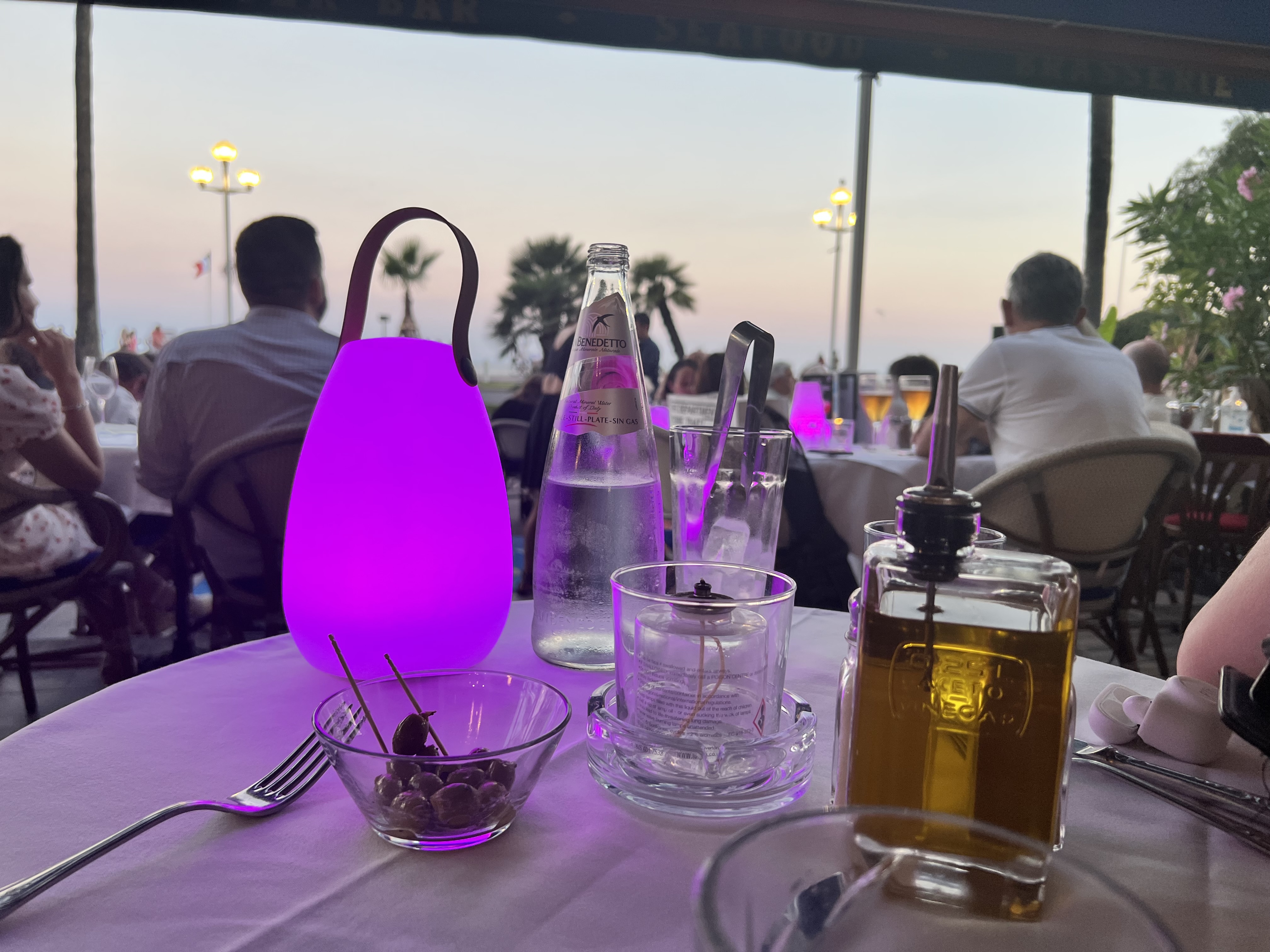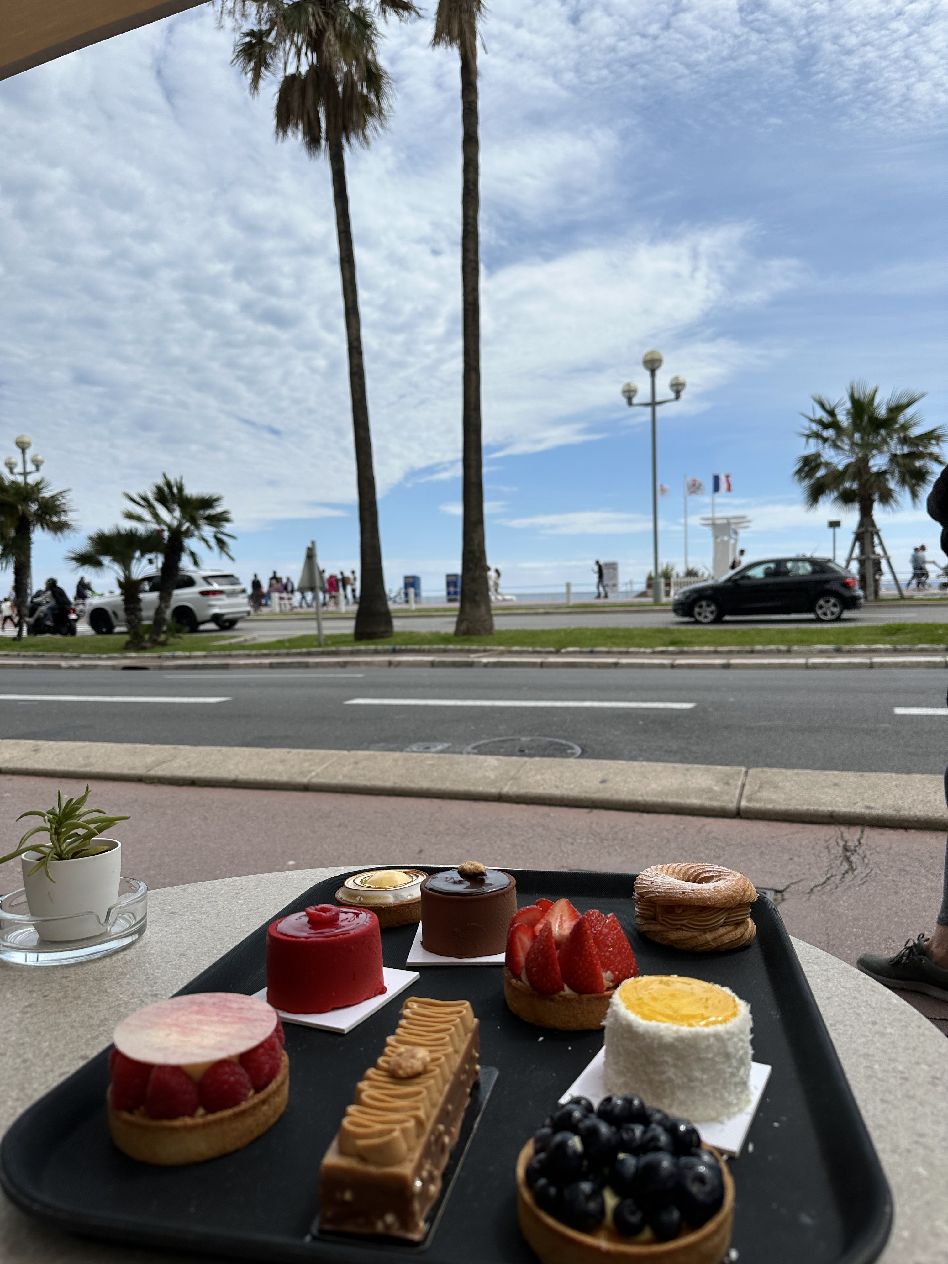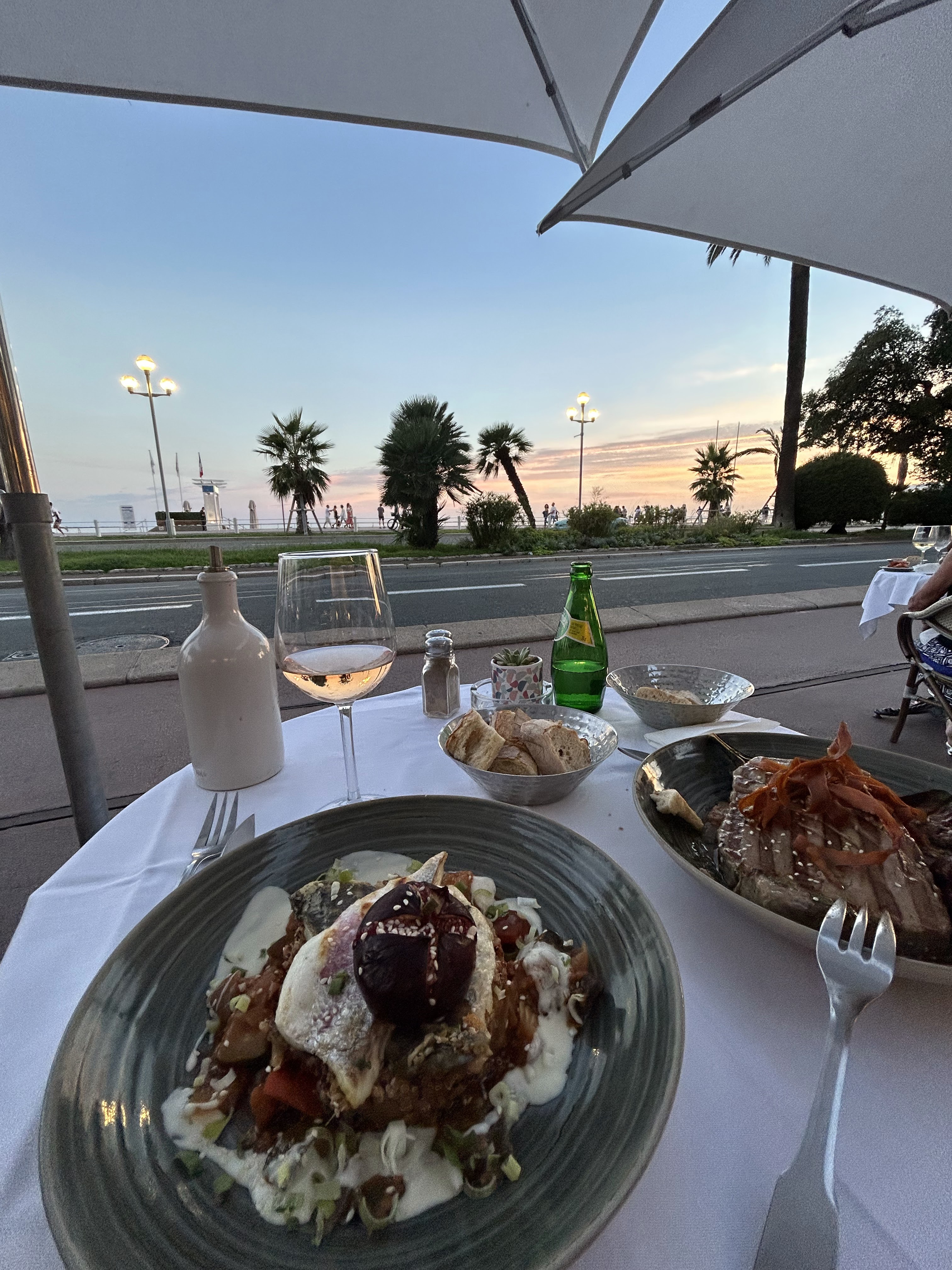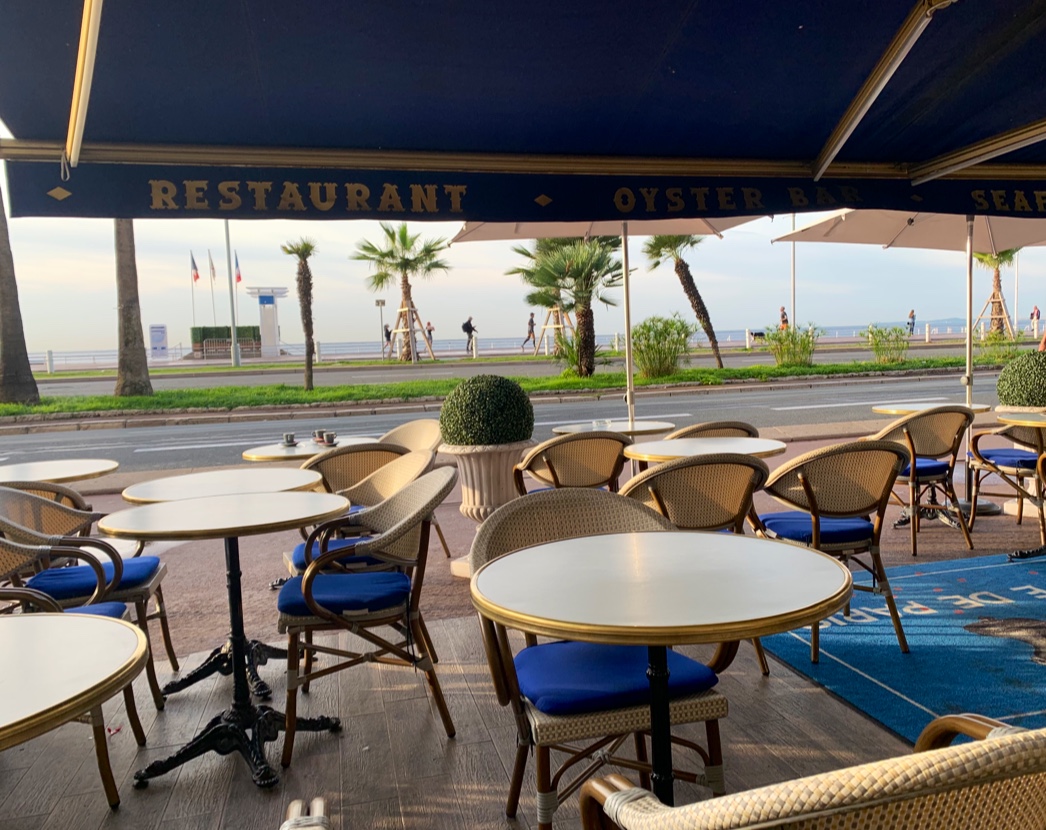 Endroit parfait pour une salade niçoise avec vue sur la Promenade des Anglais. Sur la photo, vous pouvez voir les deux serveurs sympathiques :-)