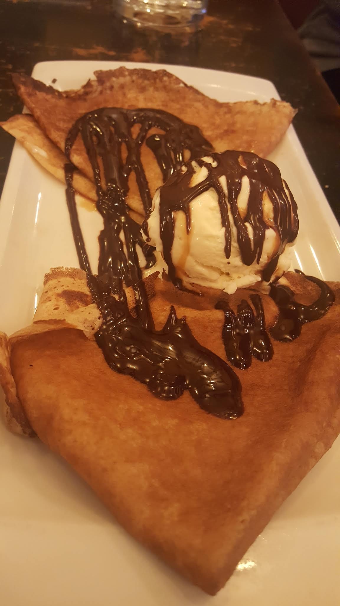 Nous avons mangé des suprêmes de canard et de poulet et les deux étaient bons et les crêpes du désert de Paris étaient vraiment délicieuses. Le serveur était très sympathique et parlait bien anglais et était serviable et compréhensif. Les prix étaient raisonnables, surtout si l'on considère que l'endroit est si proche du Louvre.